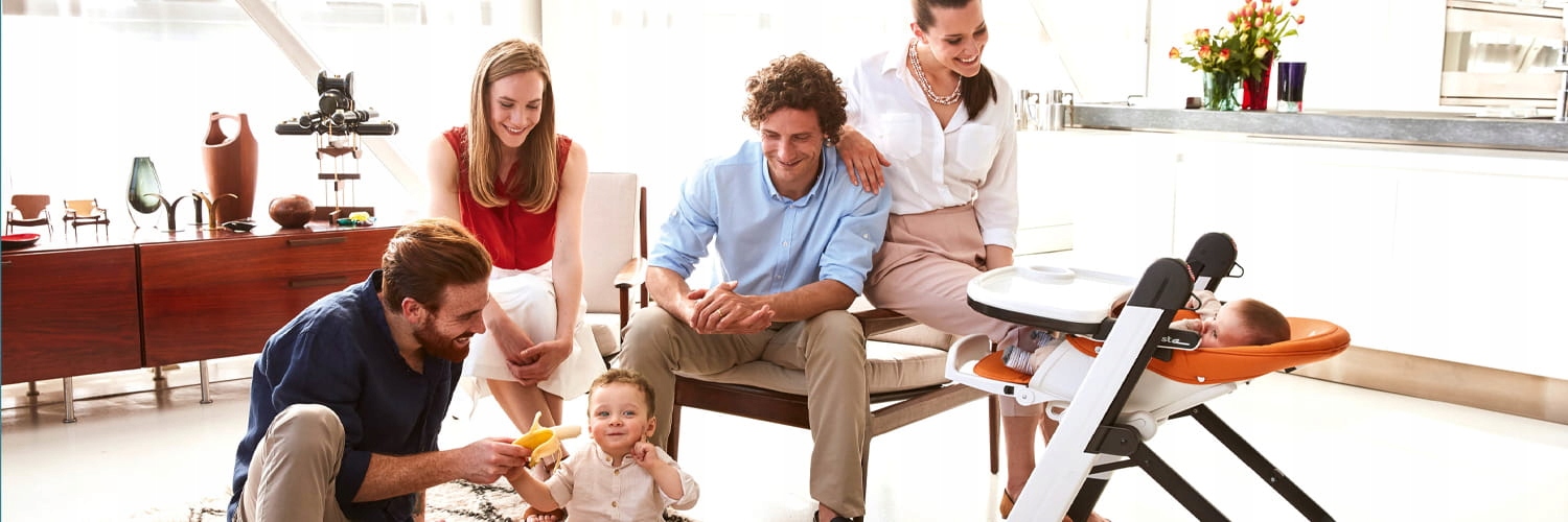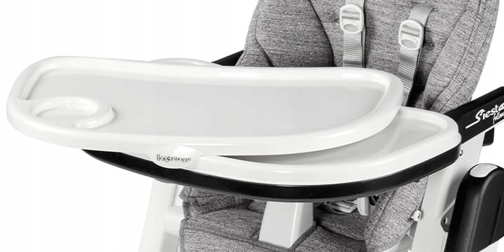 Интересное решение от Peg Perego заключается в том, что верхняя часть (поднос) Стул можно снять и повесить на задние трубы. И поставить стул к столу, чтобы пообедать всей семьей.