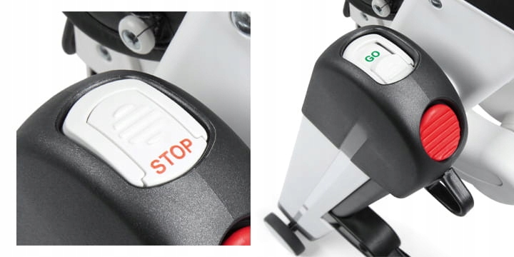 Благодаря системе «Stop&Go» тормоза постоянно включены, не позволяя креслу двигаться самостоятельно. В верхней части рамы расположен механизм, который освобождает фиксатор колес и позволяет удобно перемещать кресло на колесах, не поднимая его
