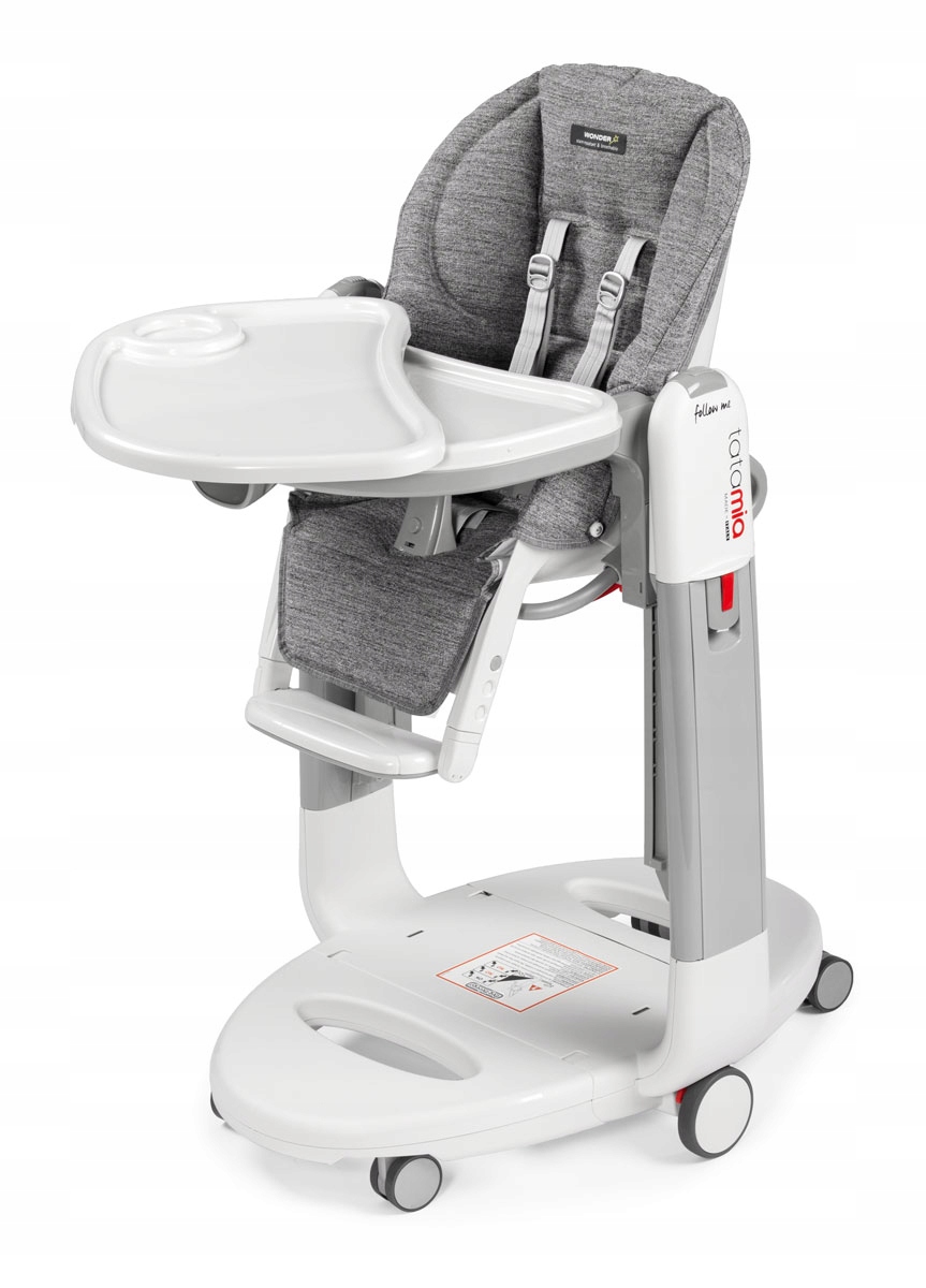 Кресло Tatamía Follow Me оснащено двойной полностью съемной столешницей. Ее верхний элемент легко снимается и моется даже в посудомоечной машине. Сиденье имеет четырехступенчатую регулировку положения и многоступенчатую регулировку высоты сиденья, подножку можно расположить на трех разных уровнях. Для обеспечения полной безопасности ребенка кресло имеет пятиточечные ремни безопасности и пластиковую штырь, защищающий ребенка от выпадения - в варианте лежак/качели на его место устанавливается дополнительный защитный барьер.