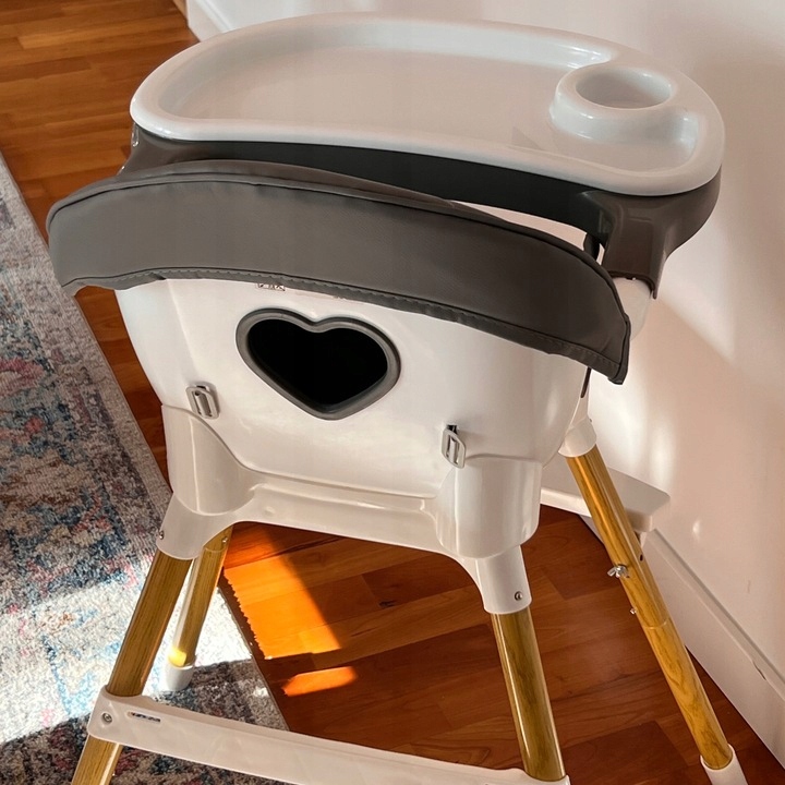 ▶ Стульчик для кормления имеет большую закругленную верхнюю часть, на которой легко разместить еду, закуски или книжку-раскраску, превращая обеденную зону в игровую площадку.
