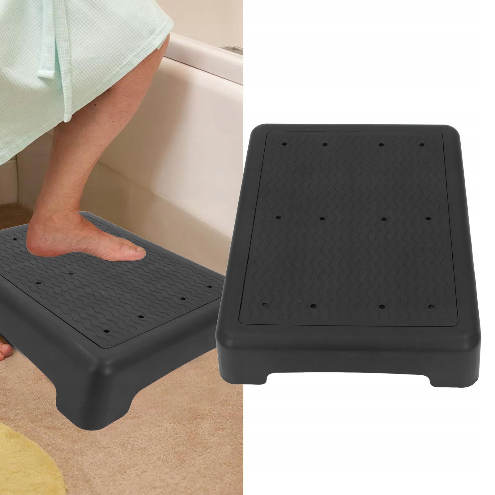 3. Безопасность: текстурированная резиновая верхняя часть табурета обеспечивает надежную опору, а нескользящие резиновые ножки предотвращают скольжение прочной пластиковой подставки для ног на скользких и влажных поверхностях, обеспечивая вашу безопасность.