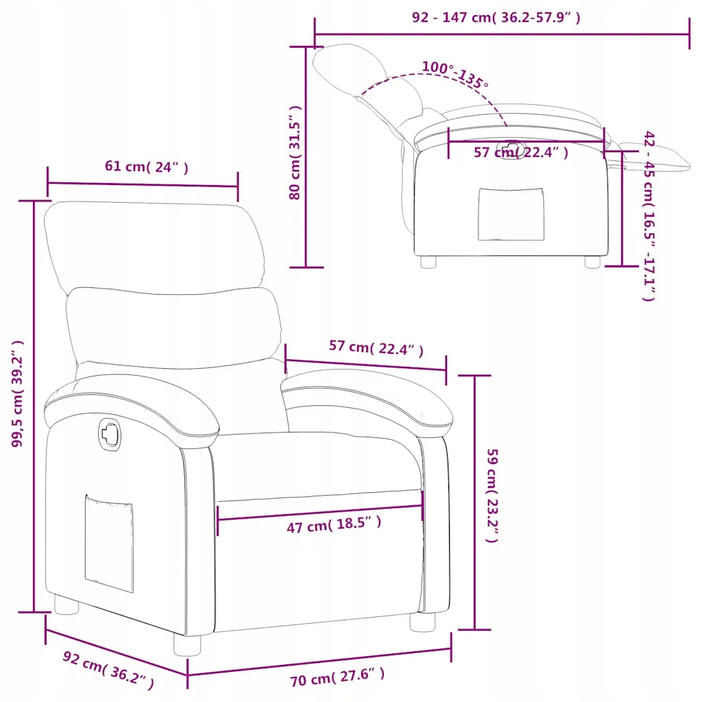 - Размеры в положении лежащего вниз: 70 x 147 x 80 см (ширина x глубина x)
