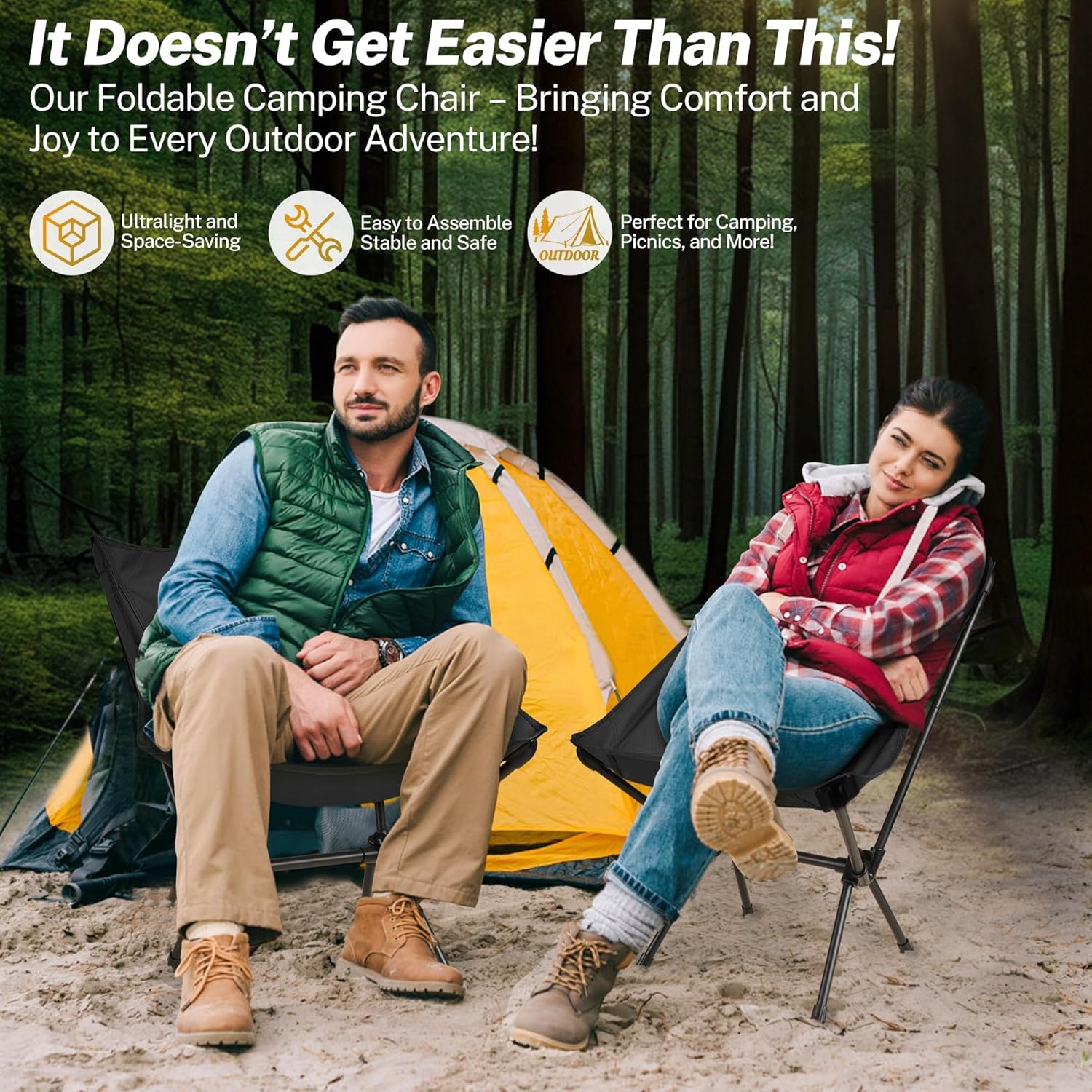 Стул складной КУОГАС, черный, 130 кг, ультралегкий, портативный