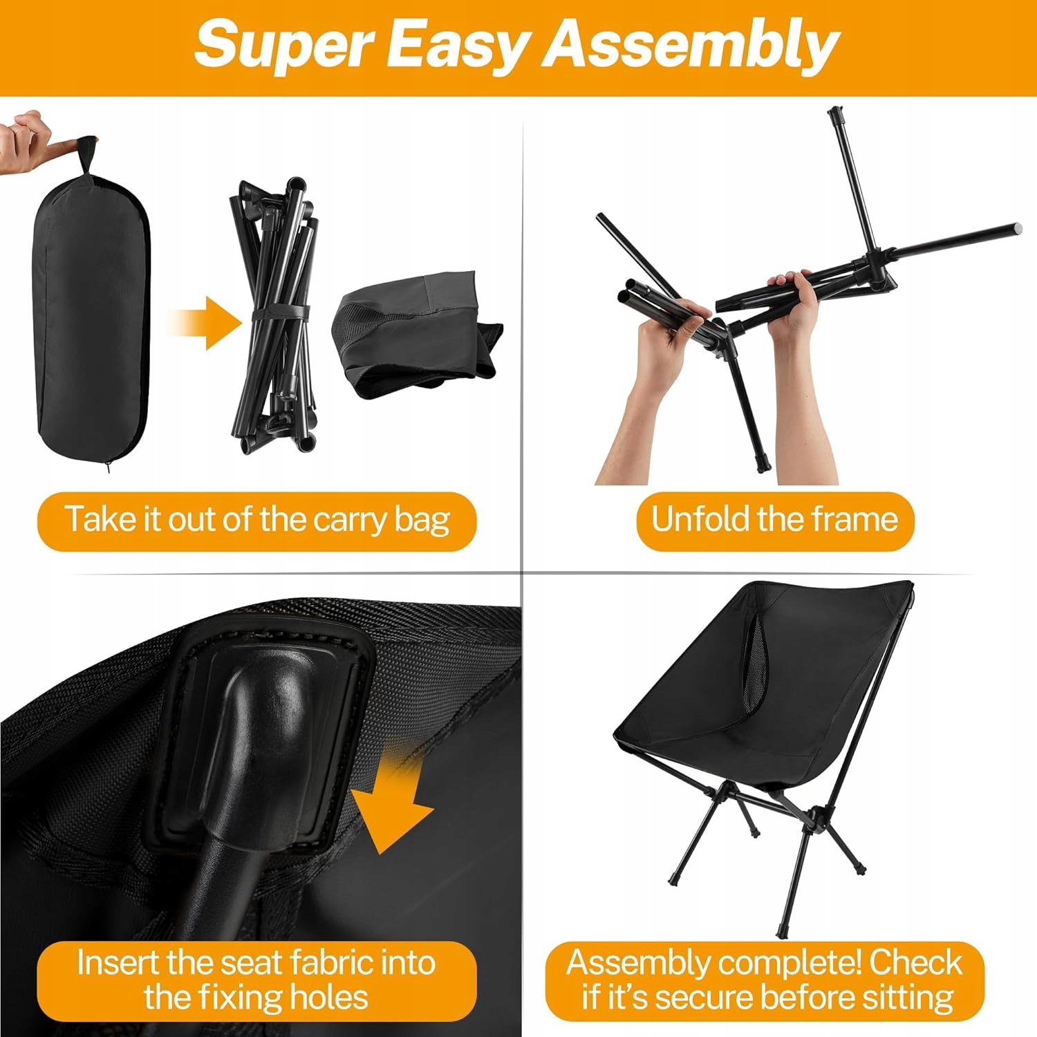 <р> ОПИСАНИЕ ПРОДУКТА <р> Стул походный, складной, сверхлегкий, 130 кг, небольшие размеры в сложенном виде, складной походный стул, переносной, с сумкой для переноски, походный стул, складной, легкий, для походов, рыбалки, пляжа <р> ИНСТРУКЦИИ ПО БЕЗОПАСНОСТИ <р> Храните вдали от открытого огня и прямых источников тепла.Параметры продукта