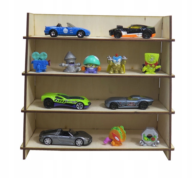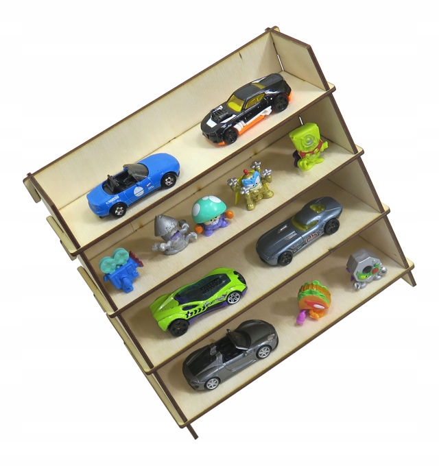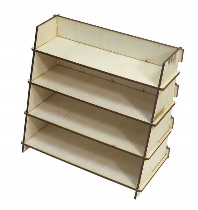 - Стеллаж с размерами в сложенном виде: высота: 200мм, общая ширина: 216мм, глубина отдельных полок: 58мм, 71мм, 83мм, 96мм.