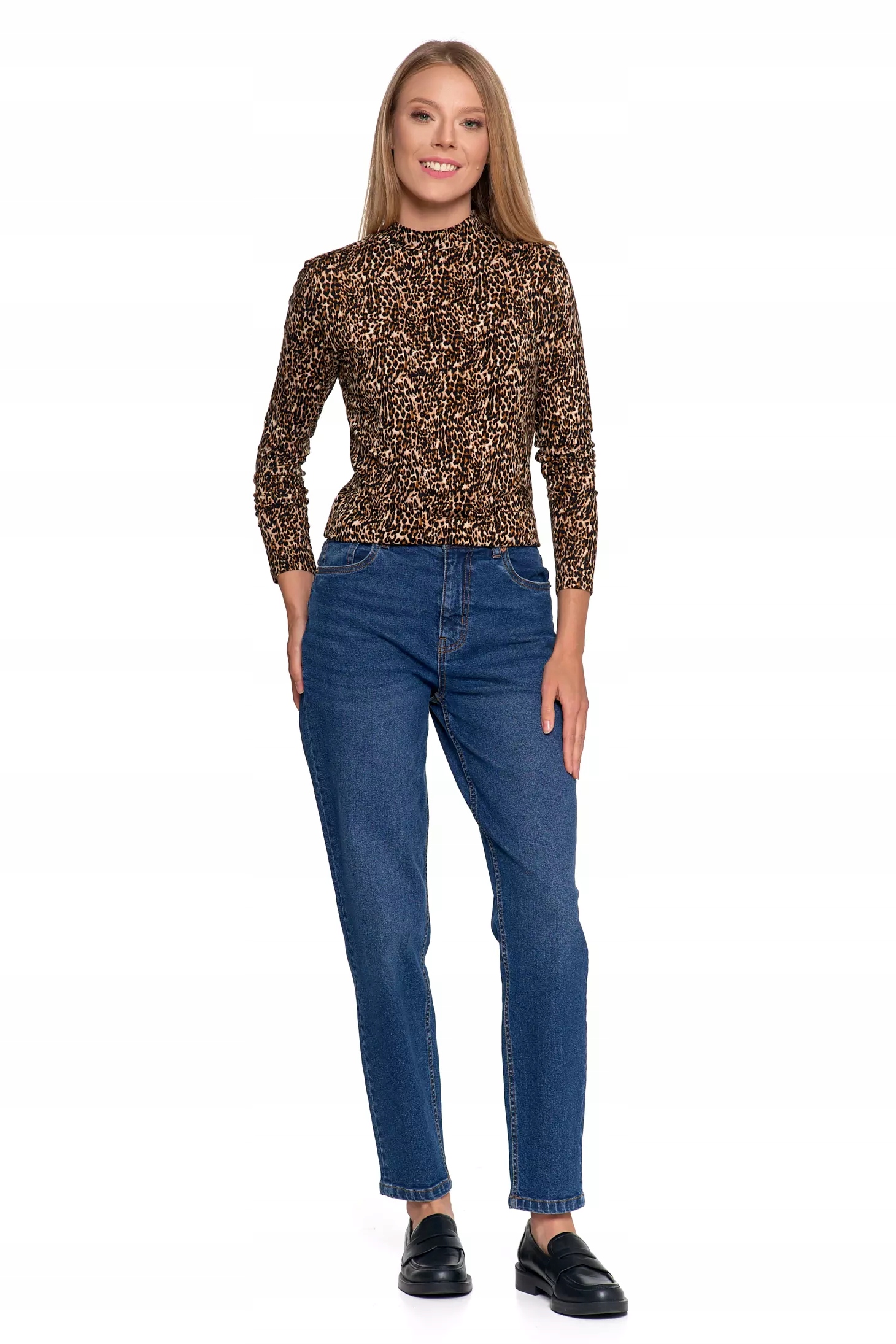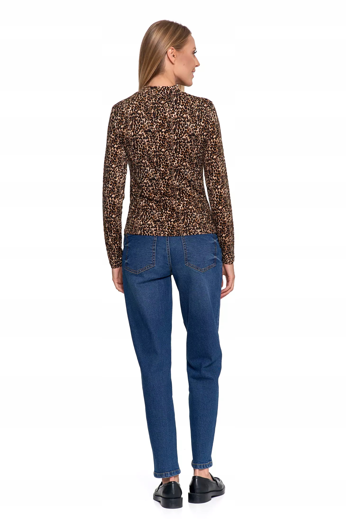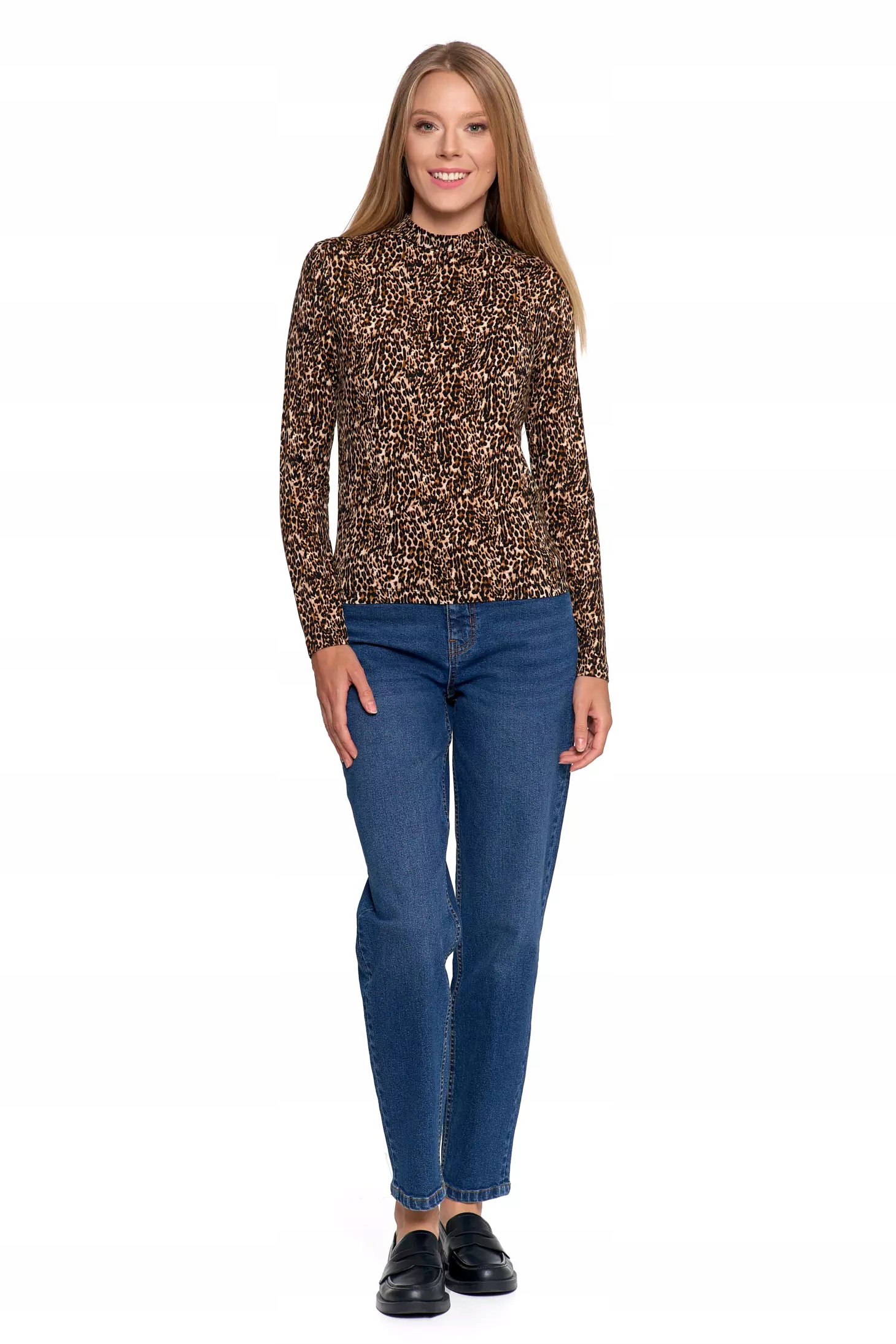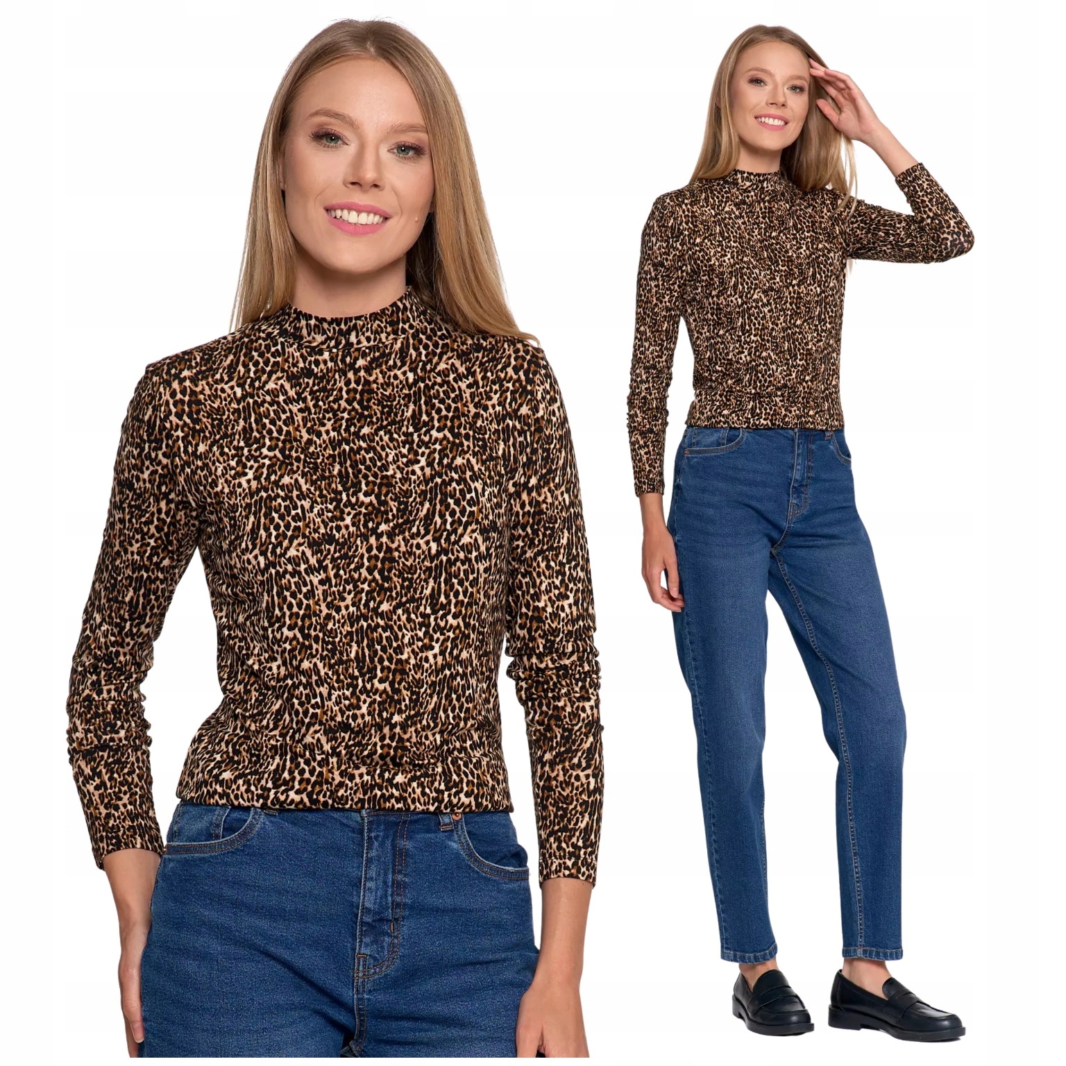 СТИЛЬНАЯ, МОДНАЯ ЖЕНСКАЯ ЛЕОПЕРОВАЯ БЛУЗКА С ВИСКОЗНЫМ ВОРОТНИКОМ-СТОЙКОЙ MORAJ XL