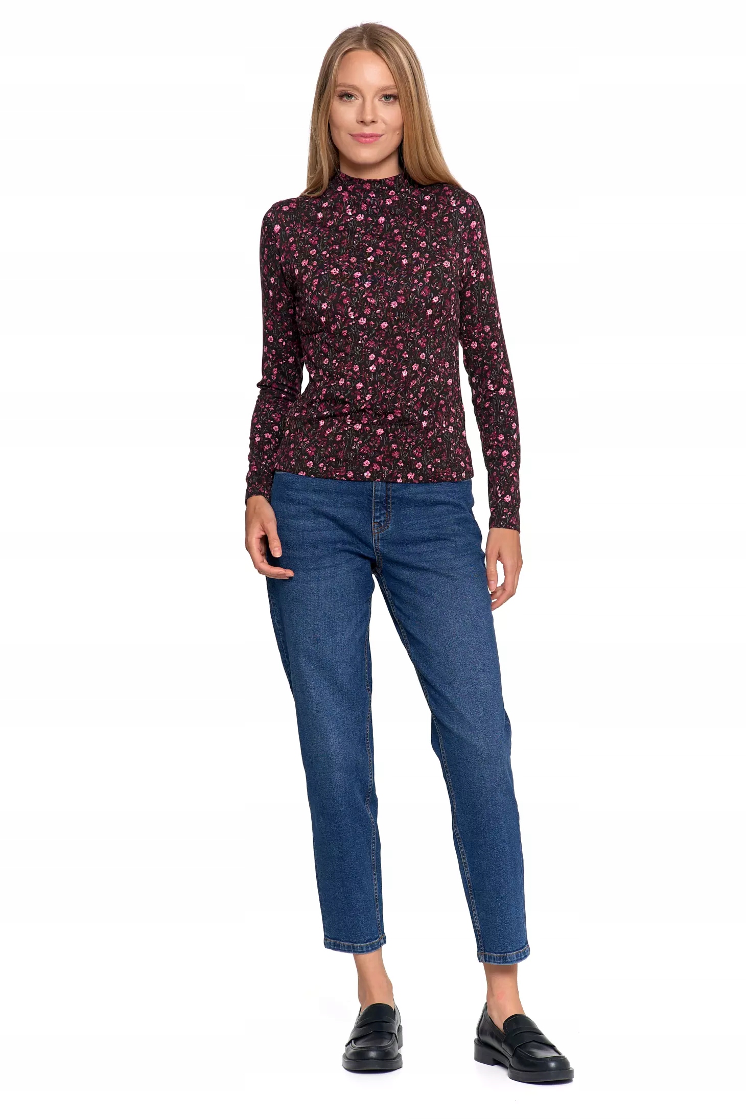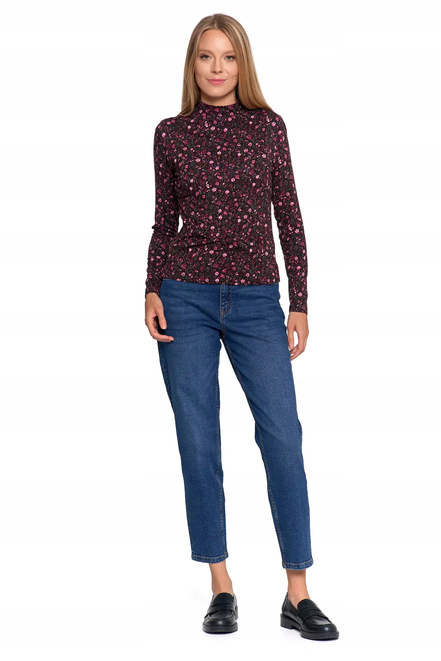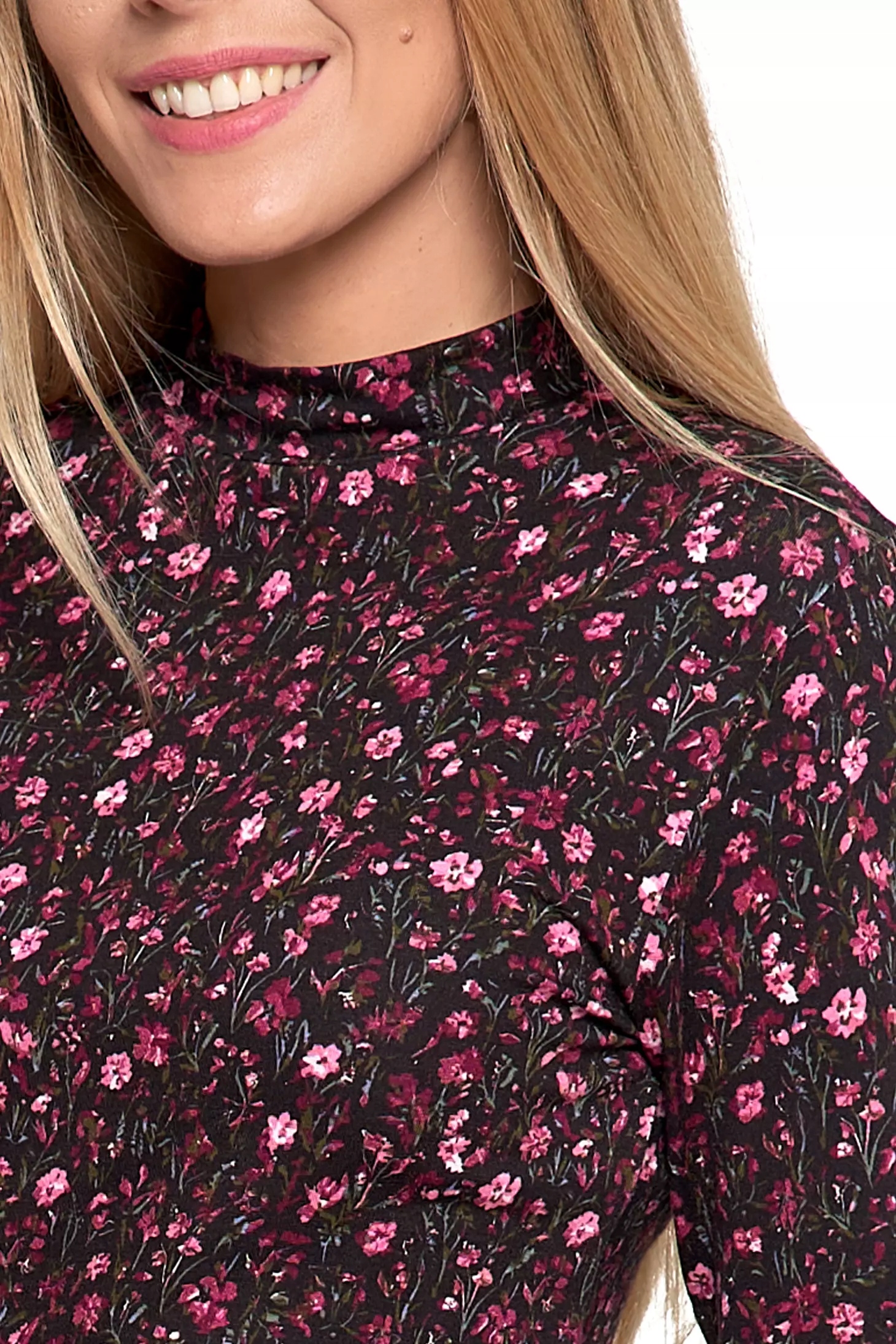 СТИЛЬНАЯ, МОДНАЯ ЖЕНСКАЯ БЛУЗКА С ЦВЕТОЧНЫМ ЦВЕТОМ С ВИСКОЗНЫМ ВОРОТНИКОМ-СТОЙКОЙ MORAJ M