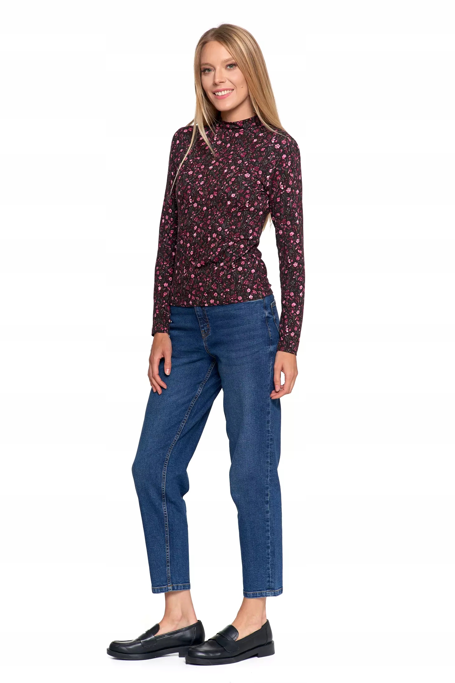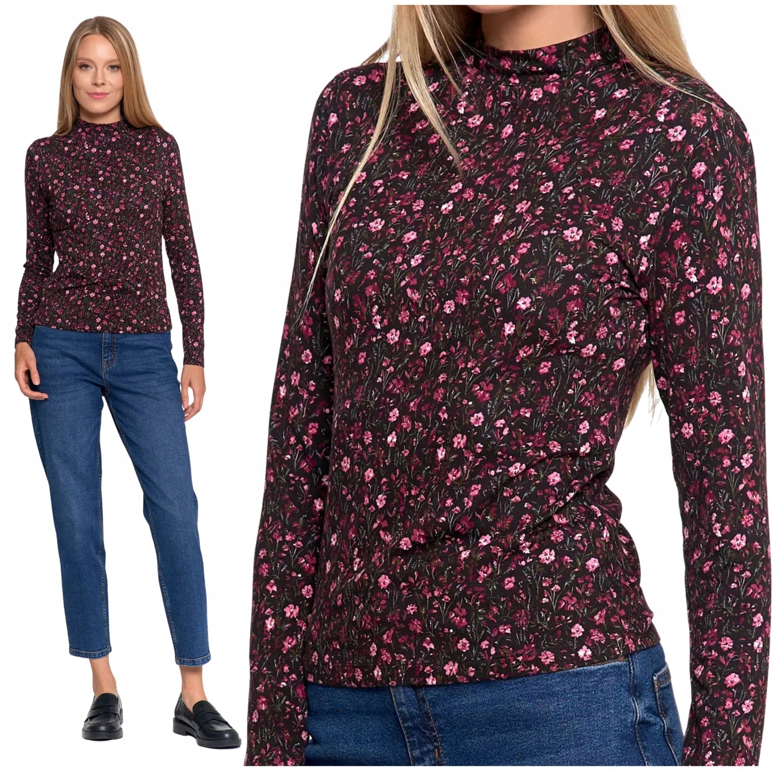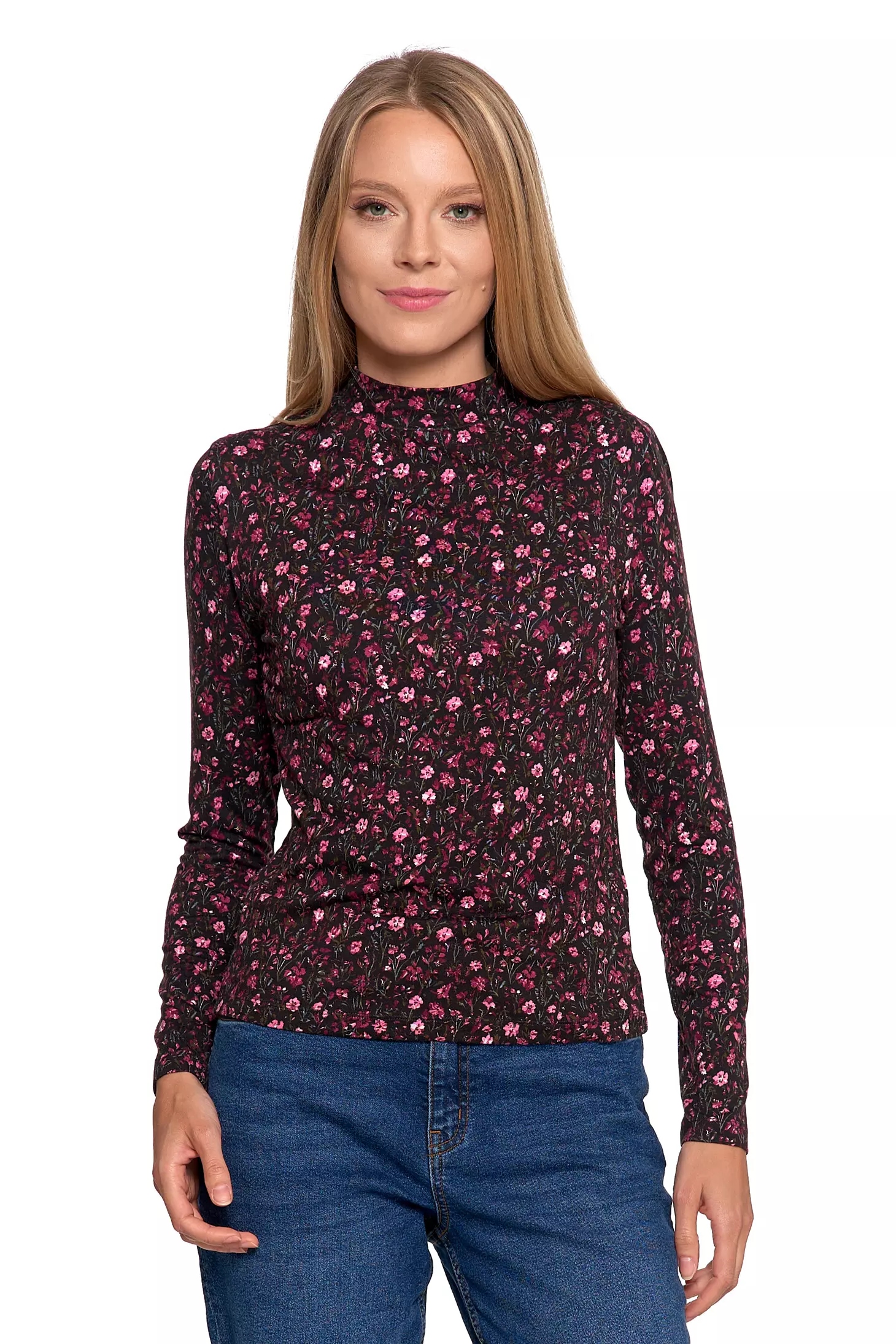 СТИЛЬНАЯ, МОДНАЯ ЖЕНСКАЯ БЛУЗКА С ЦВЕТОЧНЫМ ЦВЕТОМ С ВИСКОЗНЫМ ВОРОТНИКОМ-СТОЙКОЙ MORAJ M