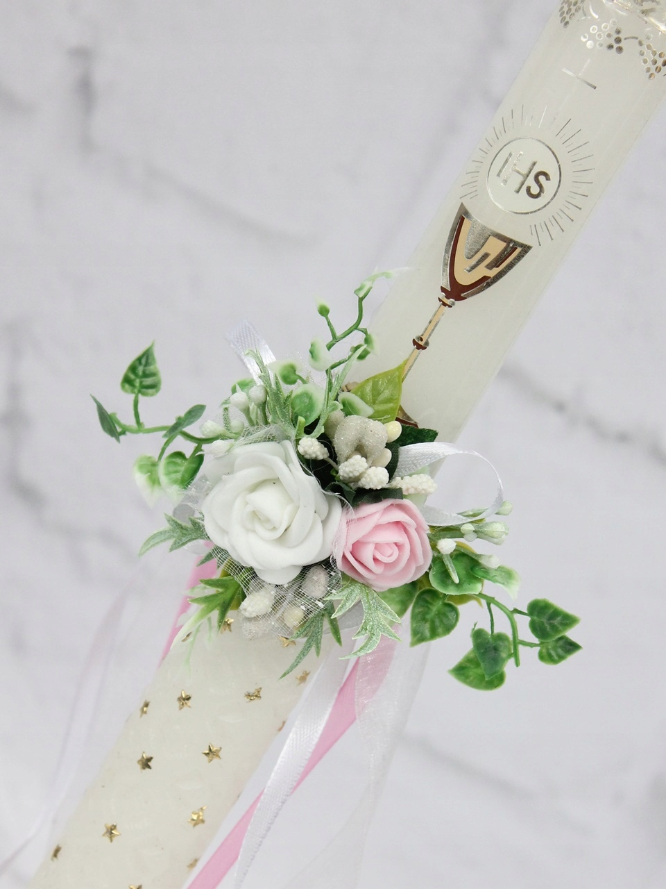 р>Уникальное украшение для свечей к причастию или крещению.