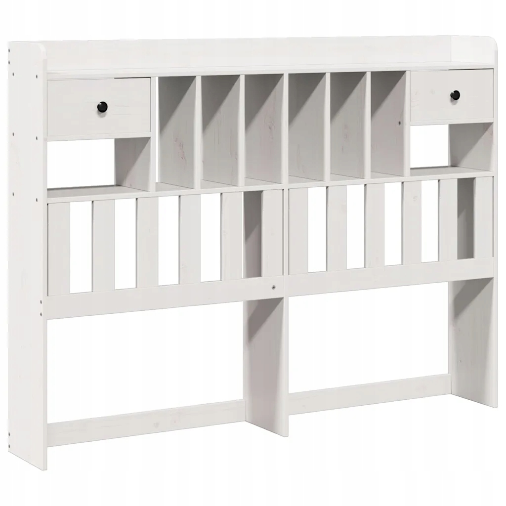 Изголовье кровати из массива сосны - белого цвета, с отделениями и ящиками.