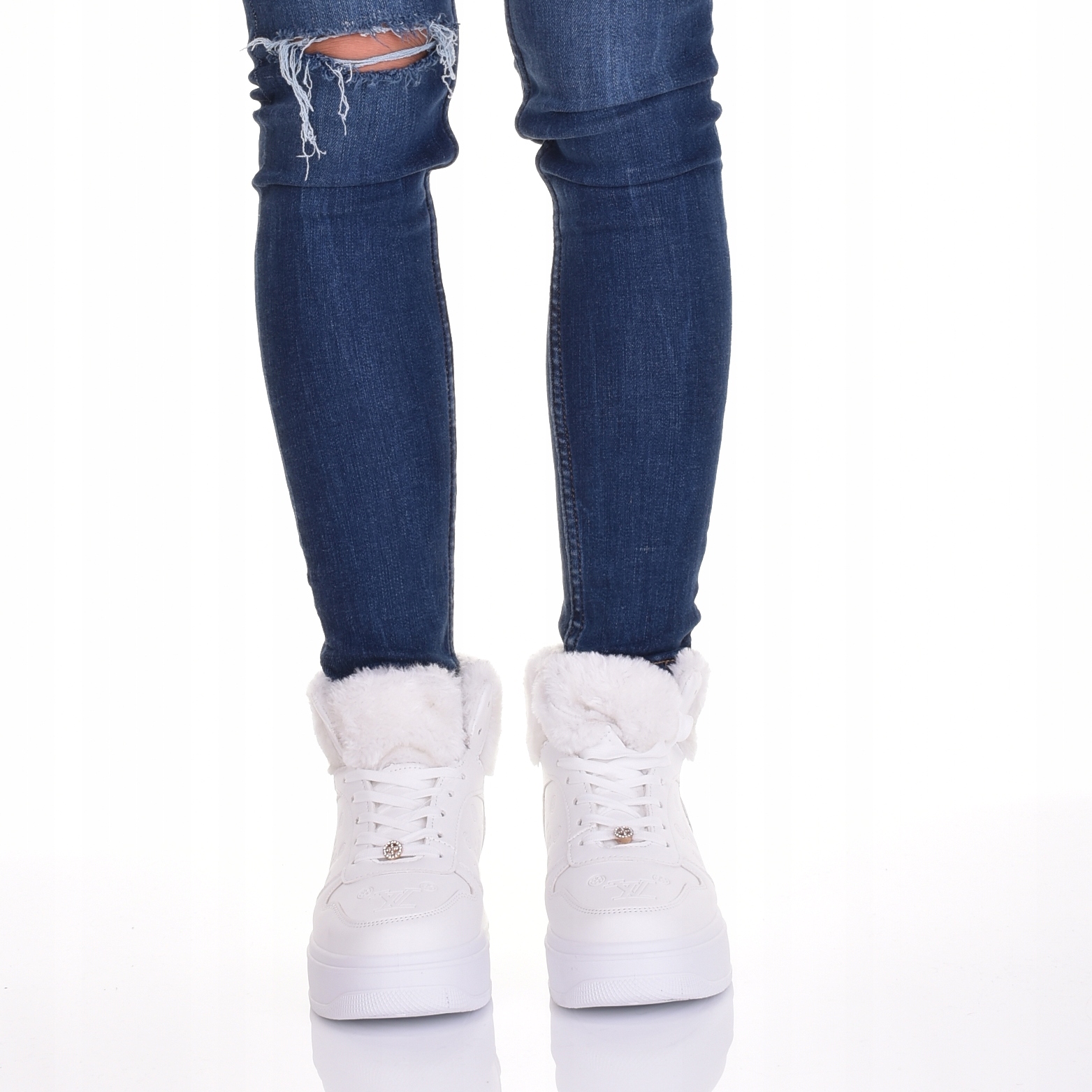 Внутренняя часть обуви утеплена густым мехом, который используется и снаружи, что прекрасно подчеркивает осенне-зимний характер обуви.