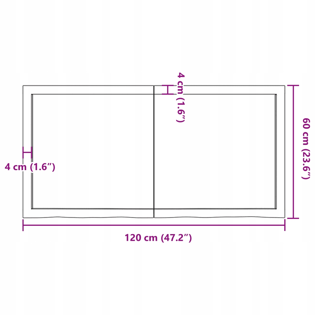 Стільниця для ванної кімнати, 120x60x6 см, необроблений масив дерева