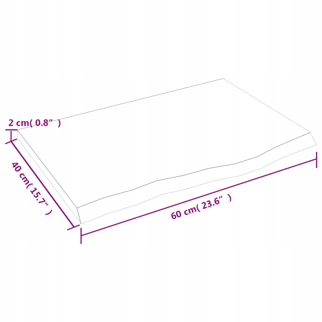 Столешница для ванной из массива дуба, лакированная, 60х40х2 см, светло-коричневая, с живой кромкой
