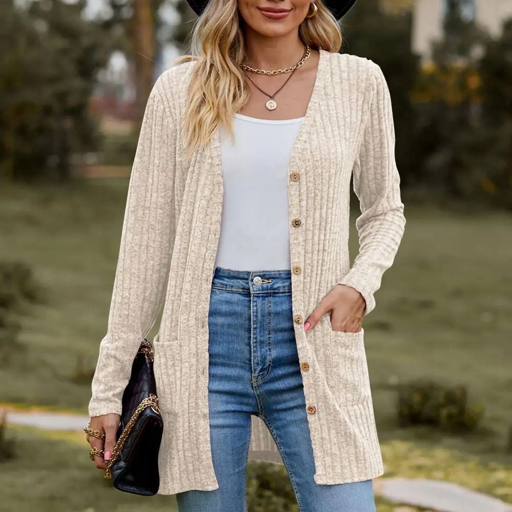СТИЛЬНЫЕ ЖЕНСКИЕ ДЛИННЫЕ ТЕПЛЫЕ СВИТЕРА С ПУГОВИЦАМИ ДЛЯ ФОРМ