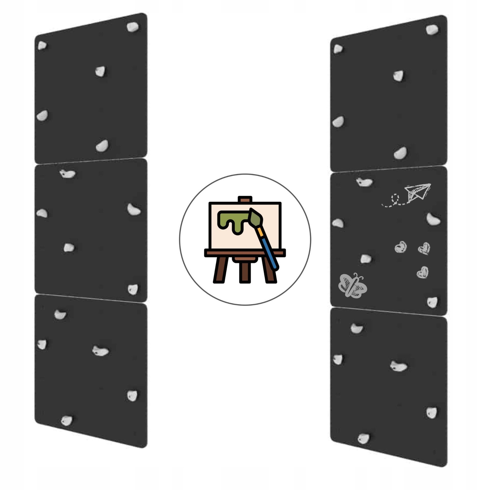 Набор состоит из пластин Z3 75x75 см, изготовленных из устойчивой фанеры и 15 ручков для восхождения. Целое окрашено краской на доске - вы можете рисовать с мелом после нее!