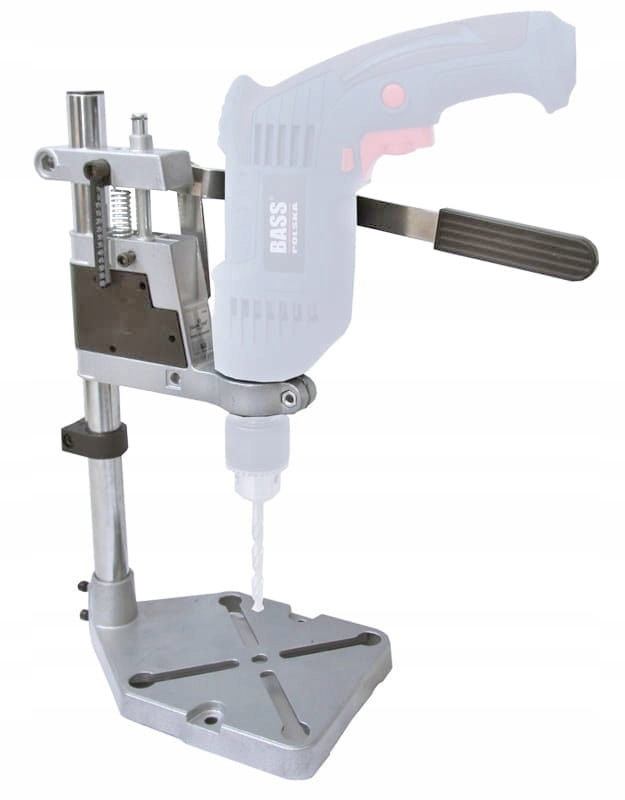 Стойка позволяет изменять положение установленной дрели по вертикали, что позволяет для стабильной работы, снижая вероятность поломки или повреждения сверла.