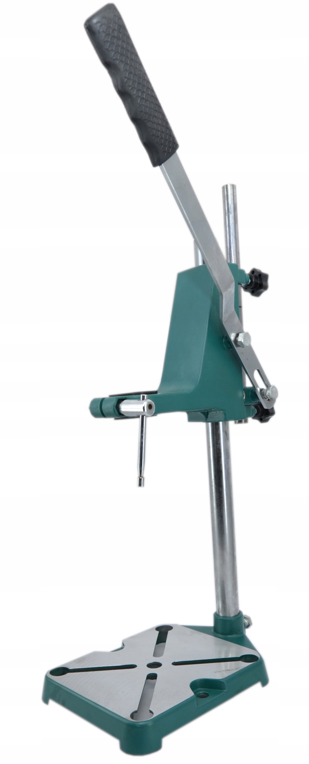 Корпус выполнен из алюминия, что делает его легким. и прочный. Управление прикрепленной дрелью предполагает управление пружинным рычагом, который позволяет дрели автоматически возвращаться в исходное положение. Подставка имеет универсальное крепление для большинства дрелей.