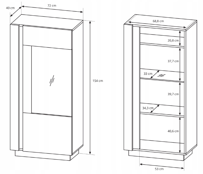 - Витрины оборудованы вместительными полками и частично стеклянными дверцами,