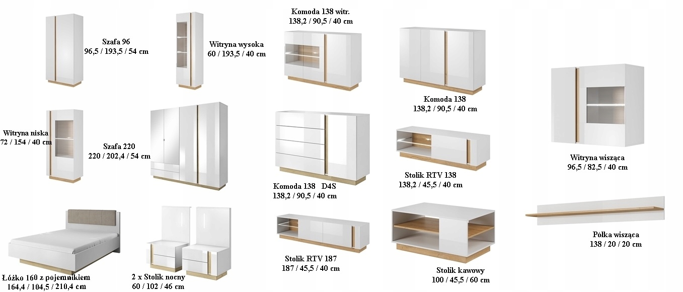 Стінка ARCO білий глянець/дуб Grandson, тумба 2x ТВ, полиця LIGNUM