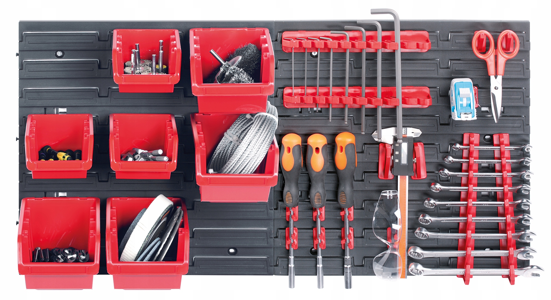 Доска для инструментов KOR4 — незаменимый инвентарь для домашнего гаража, подвала многоквартирного дома, комнаты мастера, мастерской и отличная идея для витрины. Доска с кюветами и держателями позволит нам правильно организовать необходимые аксессуары и облегчит их поиск.