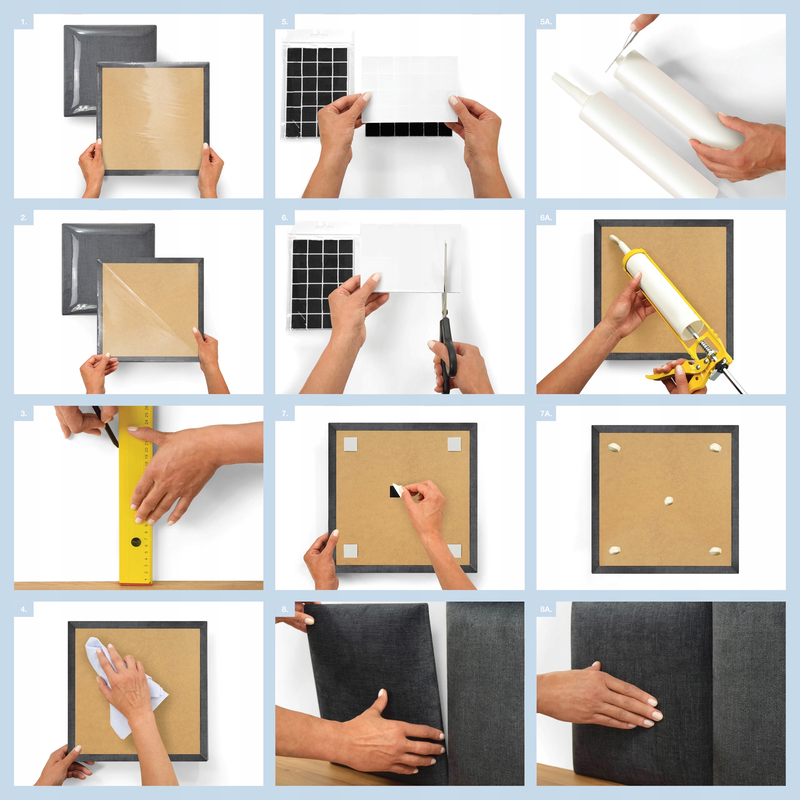 - После склеивания не отрывайте панели в течение как минимум 24 часов – это позволит липучке правильно сцепиться с основой.