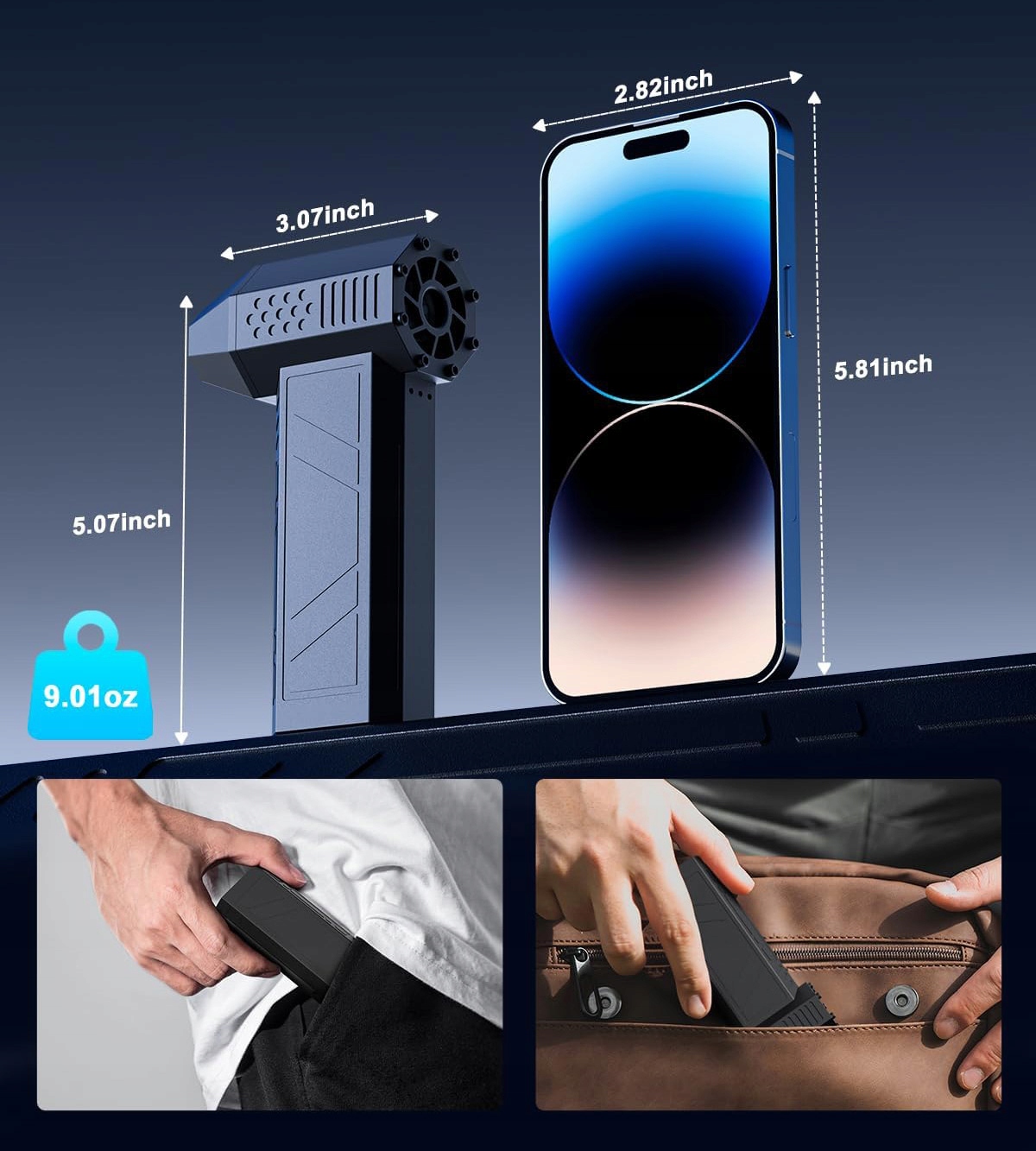 ✅ Пылесос со сжатым воздухом размером с телефон, беспроводной, легкий и портативный, идеально подходит для кемпинга на открытом воздухе и удаления листьев в саду.
