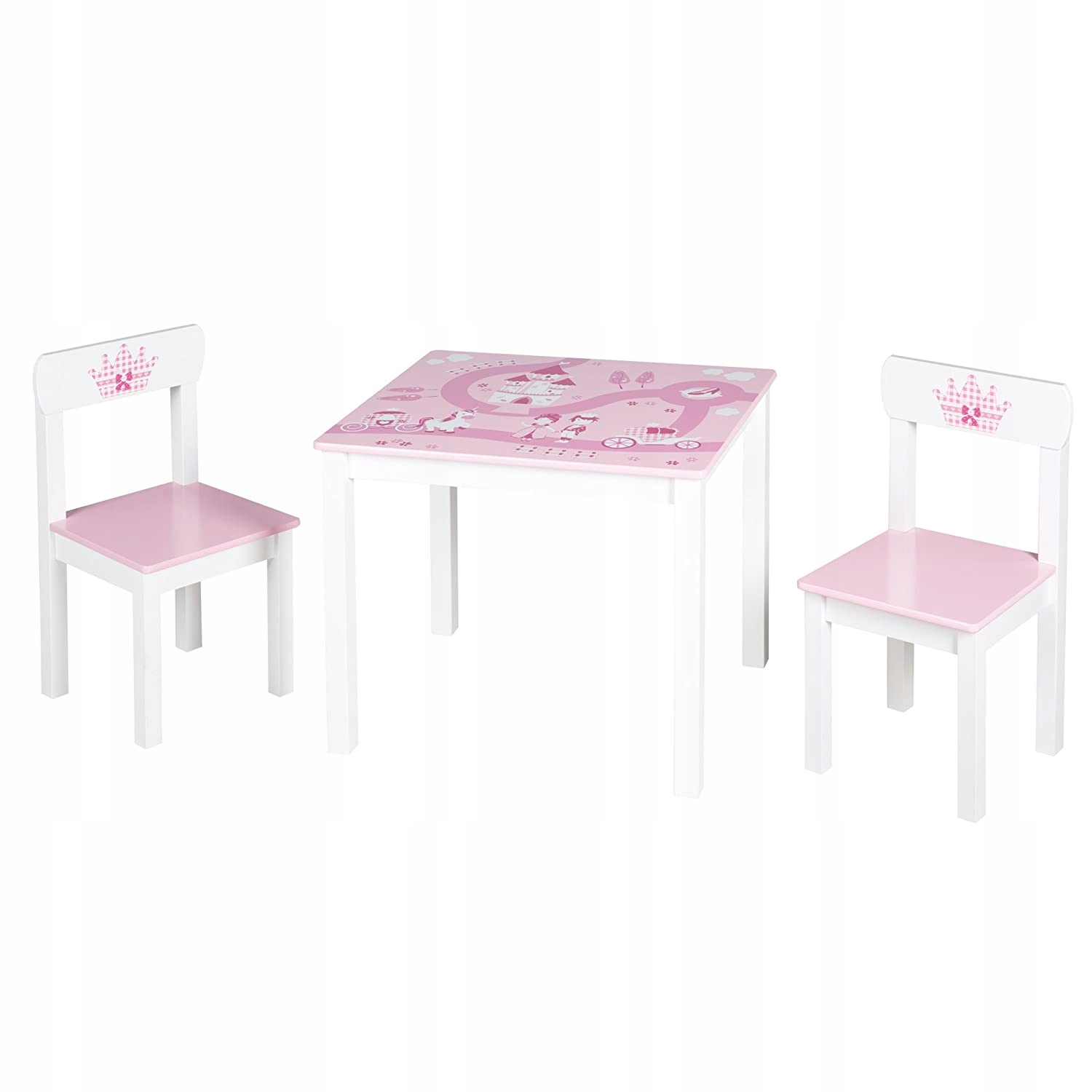 Стол с розовым принт в сказочном стиле и принт в виде короны на стульях позволят вашему ребенку почувствовать себя принцессой;