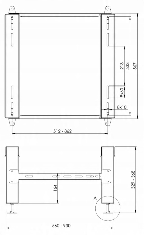 Продуманная конструкция подставки позволяет идеально подобрать ее к конкретной модели теплового насоса/кондиционера. Это связано с возможностью изменения расстояния, как по длине, так и по ширине.