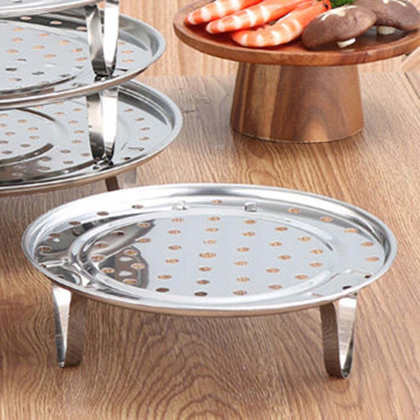 [Особенность]: вентиляционное отверстие с круглым дном и равномерным рисунком быстро нагревает еду, идеально подходит для дома или ресторана. Удобно использовать для приготовления на пару блюд, таких как тамале, овощи или всего, что вы хотите приготовить на пару. Также используйте как решетку для приготовления на пару, решетку для яиц, решетку для охлаждения, решетку для кастрюль.