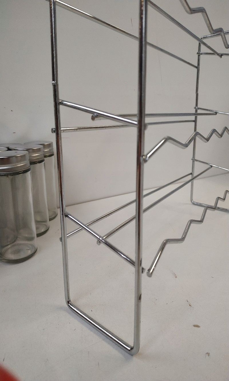 - Размеры основания набора подставок для специй (высота х ширина х глубина): прибл. 22 х 29 х 9,5 см — серебристая, отдельно стоящая металлическая рама/. li>