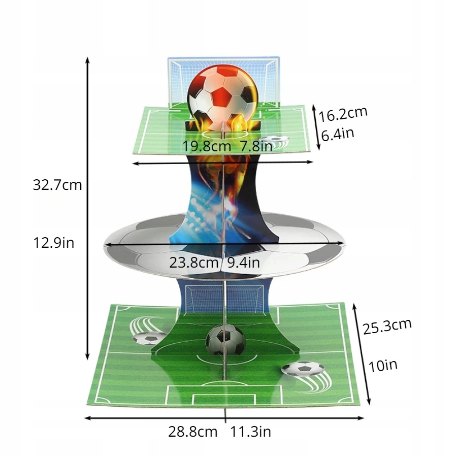 STOJAK PAPIEROWY NA MUFFINY CIASTKA PIŁKA NOŻNA BRAMKA URODZINY PATERA 30CM
