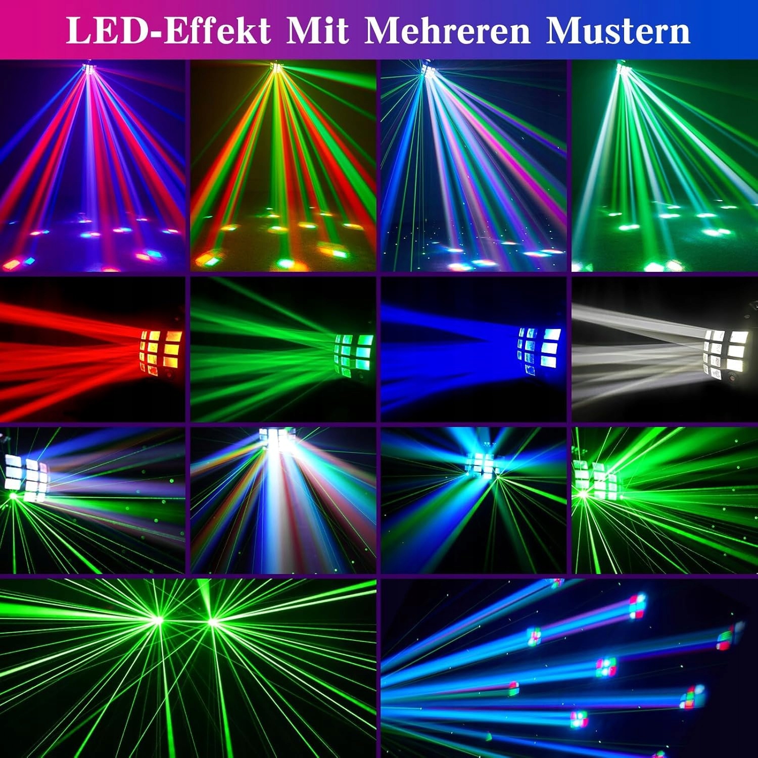 - 2 в 1 Сторонном свете: Диско -лампы оснащены различными источниками света, благодаря 14 линзам и 2 лампам Rreen Butterfly производит не менее 42 лучей. Благодаря различным световым эффектам и режимам работы многофункциональный диско -свет может сделать ваше мероприятие настоящим весельем