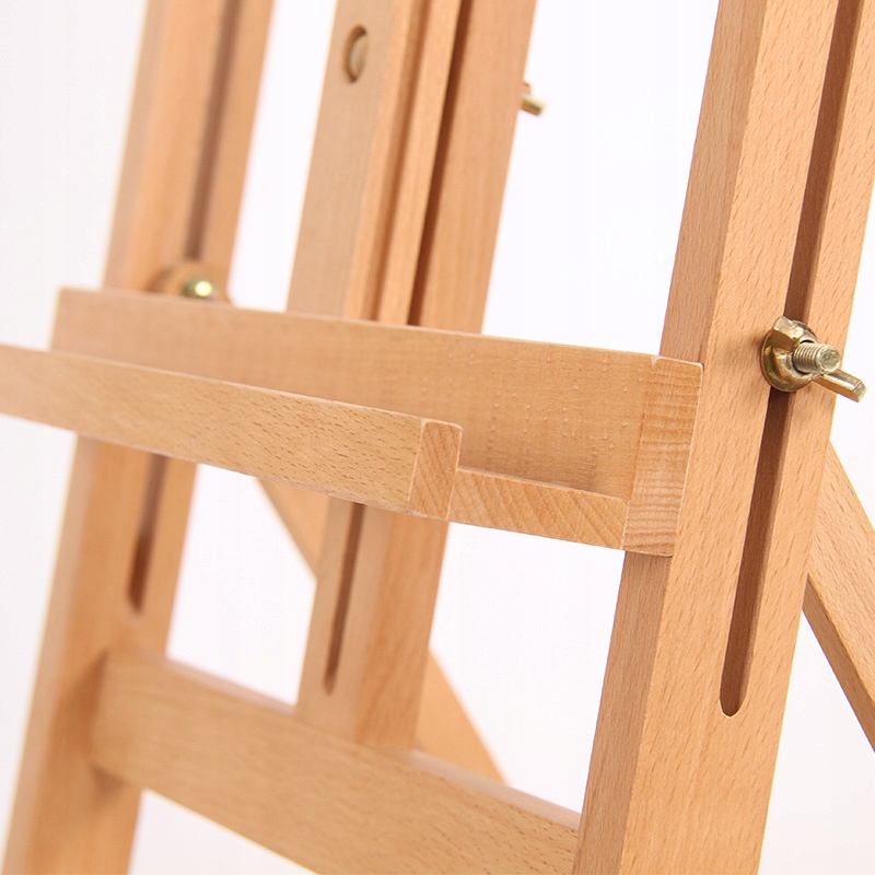 Стандартный настольный мольберт, очень устойчивый, что делает его очень удобным в использовании. Складная основа облегчает хранение. Регулируемая высота центральной планки (барашковой гайки), поддерживающей полотно.
