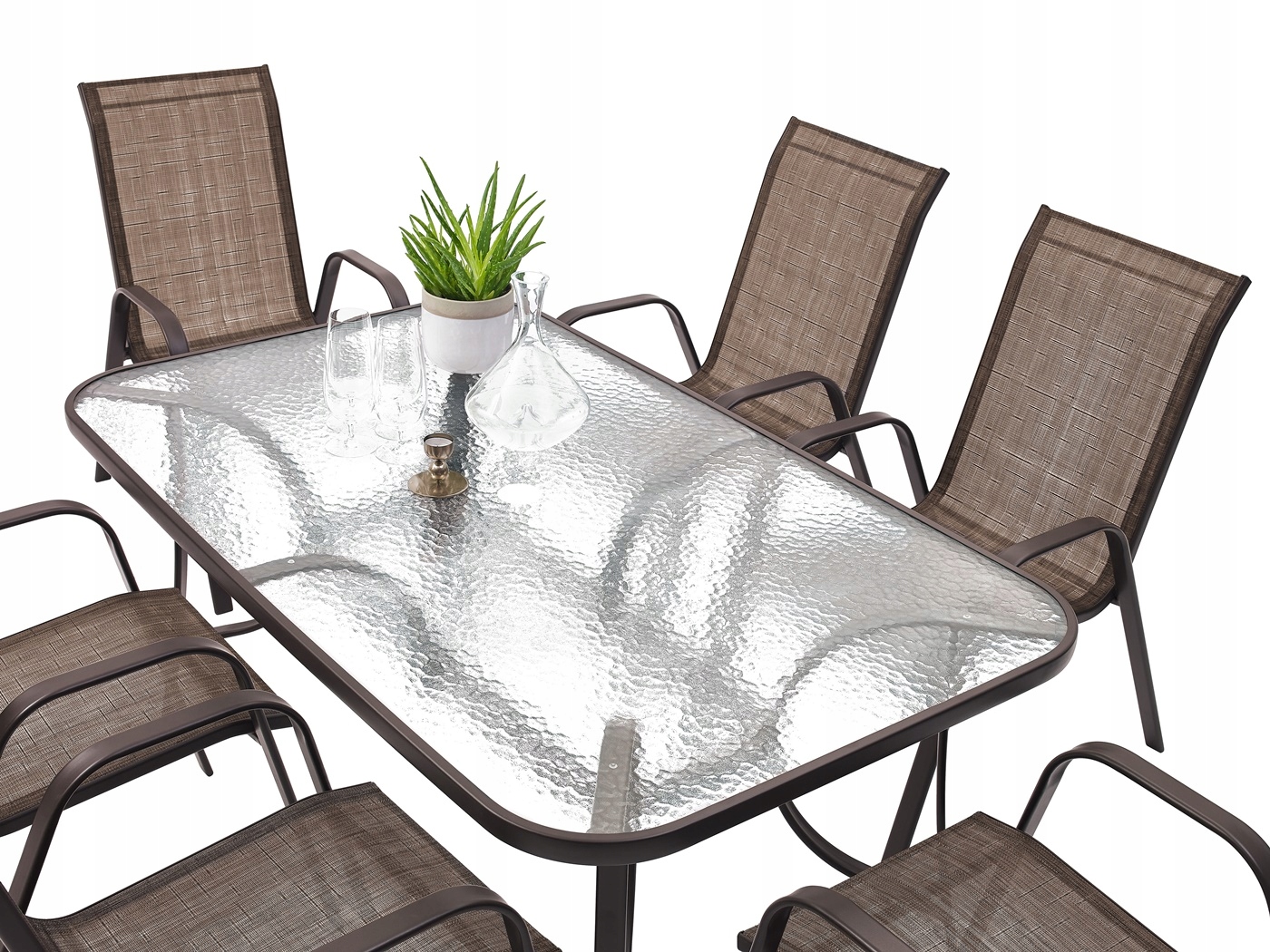Садовый стол идеально подходит для вашего сада. Каркас имеет двойное порошковое покрытие, что делает этот продукт идеальным для использования как внутри, так и снаружи помещений. Используемые материалы не требуют частого ухода, устойчивы к погодным условиям и не требуют специальных средств по уходу. Ножки дополнительно оснащены пластиковыми чехлами. Столешница имеет столешницу из прозрачного закаленного стекла. 5 мм, с отверстием для вставки садового зонта.