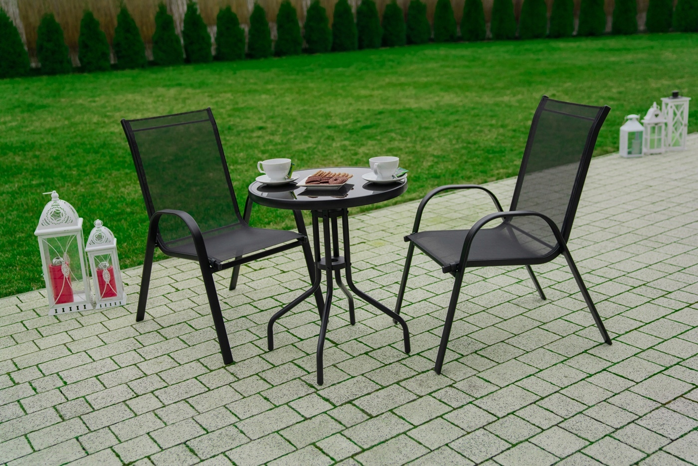 В этом легком, но прочном садовом столе есть все. Каркас изготовлен из стали и покрыт порошковой краской, а ножки отделаны резиновыми шипами, обеспечивающими противоскользящее покрытие. Чтобы времяпрепровождение было приятнее, стол оснащен дополнительным отверстием для зонта, что обеспечивает дополнительный комфорт в жаркую погоду. Стол очень функционален и имеет очень современный и простой внешний вид. Столешница изготовлена из закаленного стекла, что повышает ее долговечность.