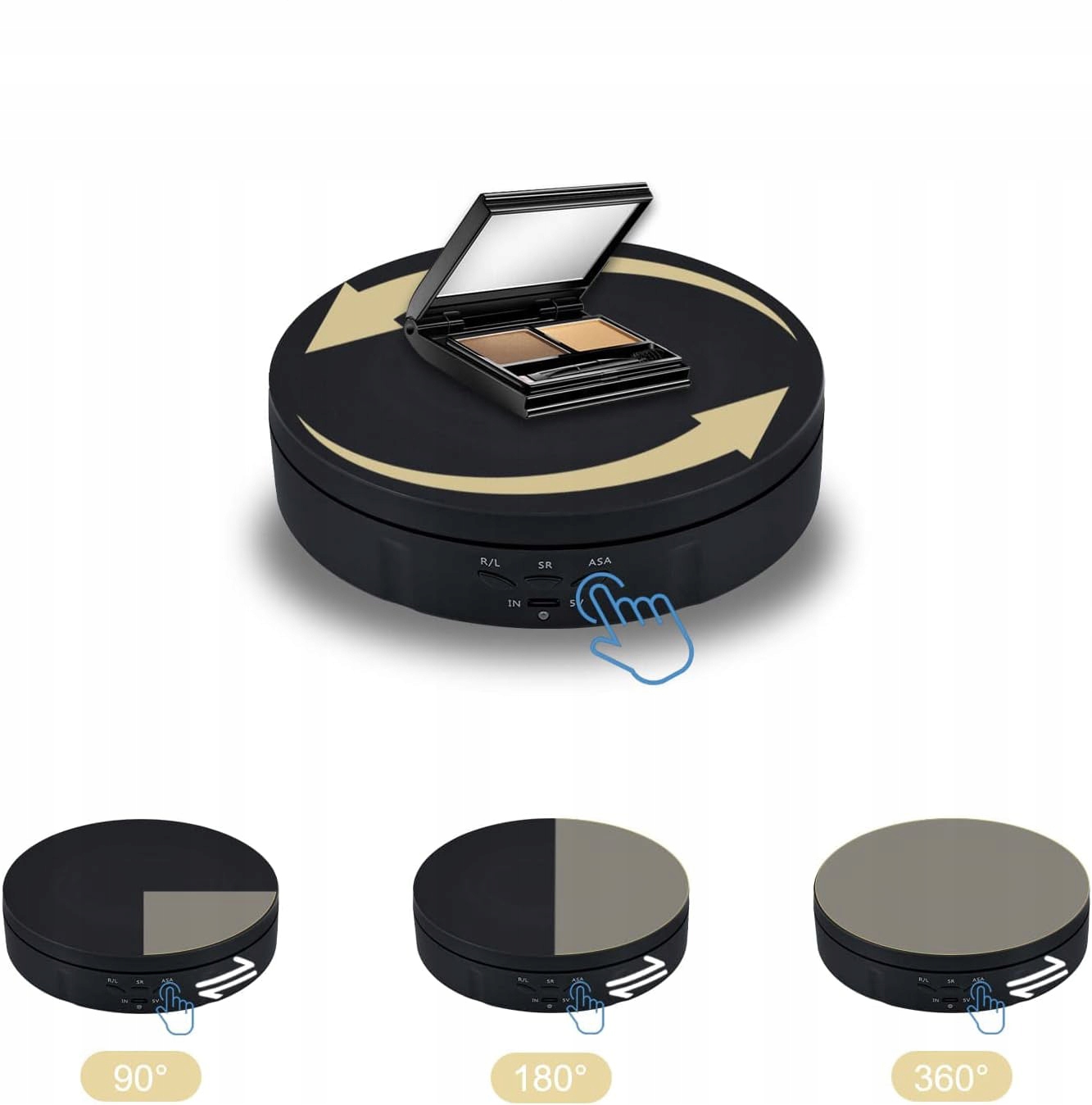 - ASA может регулировать угол поворота 90-180-360, скорость вращения поворотного стола: 8/15/30. /секунду.