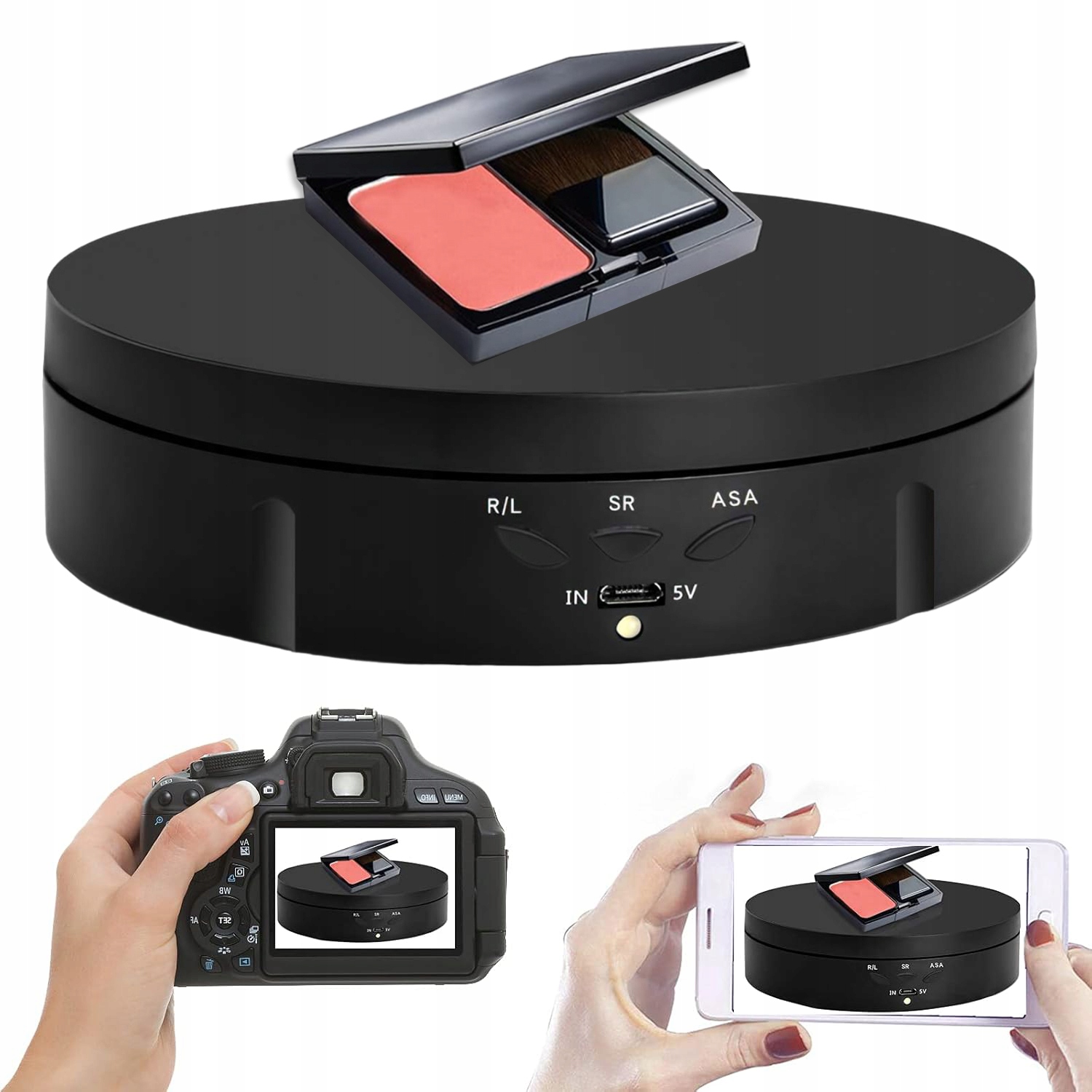 СТОЛИК ДЛЯ ФОТОГРАФІЙ, ОБЕРТАНИЙ НА 360°, БЕЗ ДЗЕРКАЛА, ЧОРНИЙ 14,5 СМ