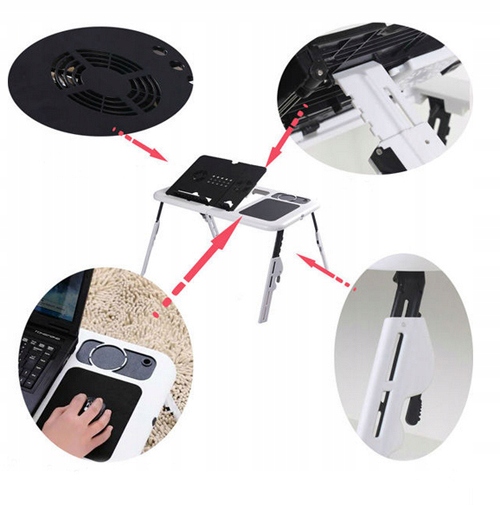 Стол подходит для любого типа ноутбука и ноутбука. Имеет регулируемую высоту ножек и регулируемый угол наклона. Дополнительно стол имеет защиту от складывания ножек.