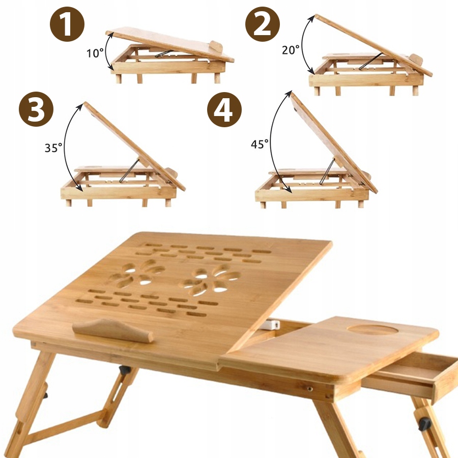 STOLIK POD LAPTOPA 17'' DREWNIANY PODSTAWKA DO ŁÓŻKA SKŁADANY REGULOWANY