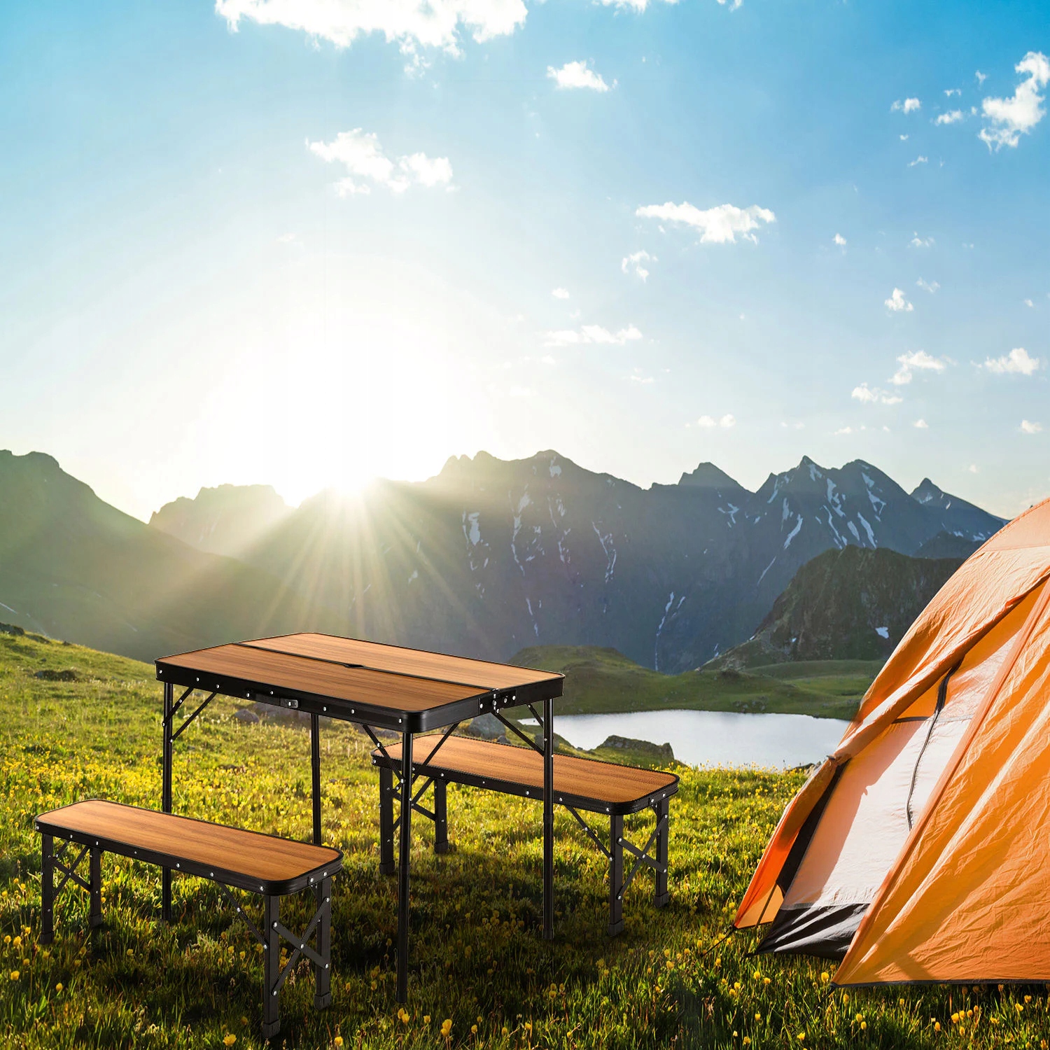 STOLIK TURYSTYCZNY STÓŁ KEMPINGOWY SKŁADANY ZESTAW 2 ŁAWKI SKŁADANE OUTTEC