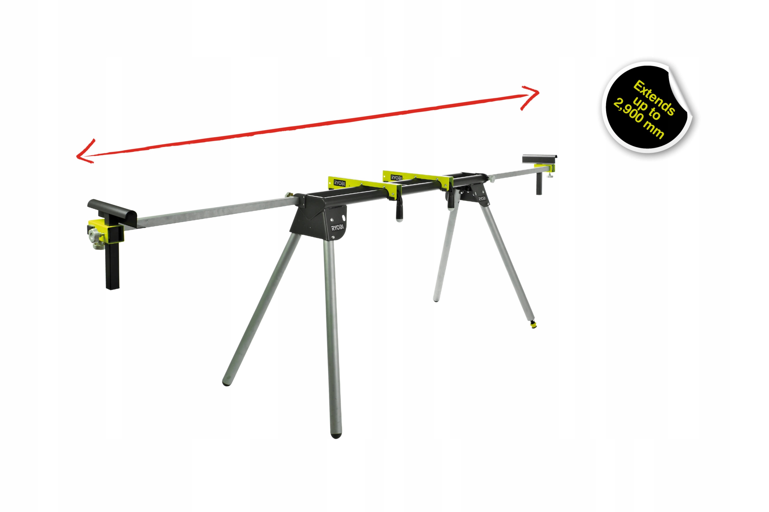 ryobi Stand Stand изготовлен из высококачественных материалов. Это позволяет отрегулировать положение сглашки. Подставка имеет регулируемые ноги и специальные раздвижные руки. Устройство характеризуется простотой транспортировки и хранения благодаря возможности складывания.