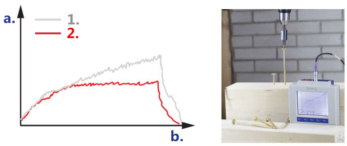 В исследовании, проведенном до реализации продукта, мы подтвердили, что новая форма наконечника винта уменьшает время винта до 40% при той же нагрузке. Количество сбережений зависит от типа соединения и используемого дерева.