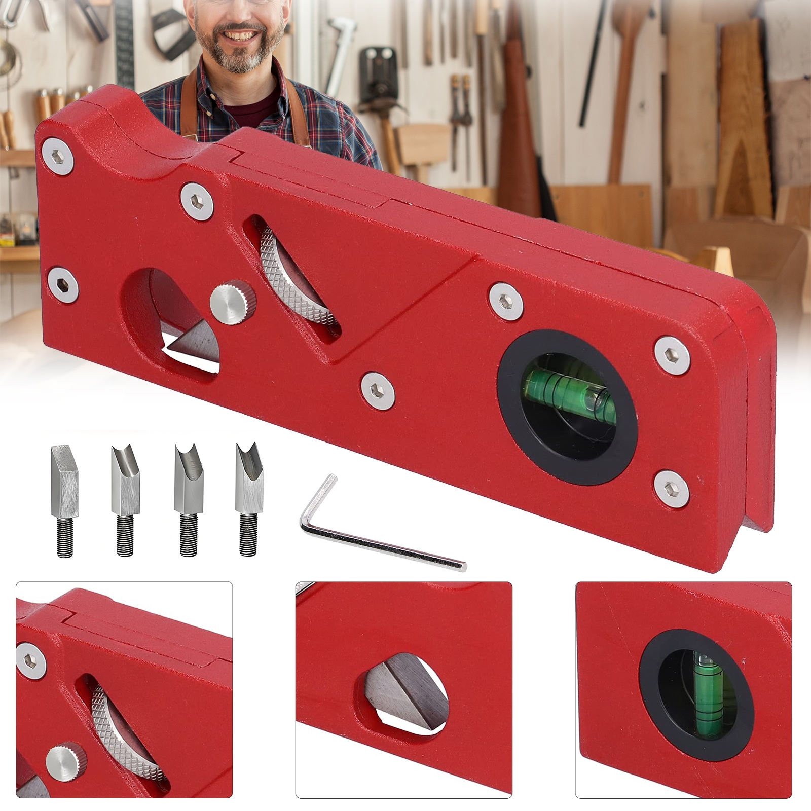 Столярный рубанок 45 градусов для снятия фасок с кромок, 4 лезвия.