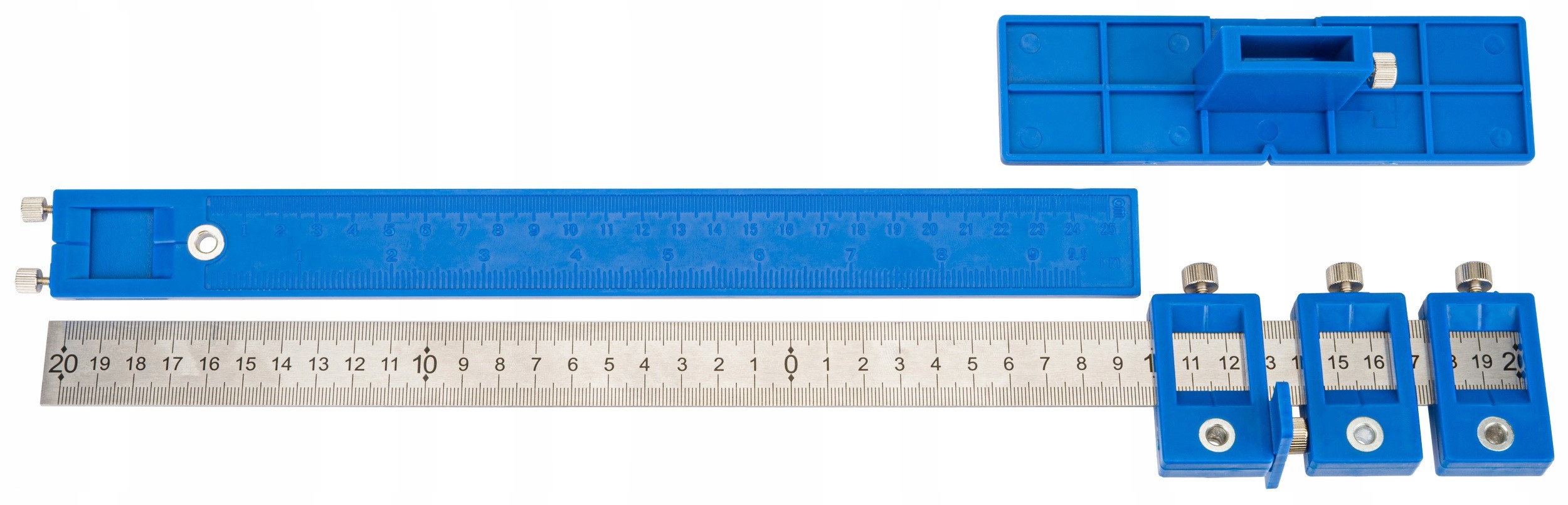 Шаблон предназначен для точного обозначения точек, в которых мы будем сверлить отверстия. Одновременно мы можем отметить четыре отверстия на разном расстоянии друг от друга и, заблокировав настройки, отметить отверстия в следующем фронте. Шаблон облегчает разметку на различных материалах, например, дереве, металле, пластике и т. д. Установленный на левом конце зажим оснащен упором, который при установке в перпендикулярном положении стабилизирует инструмент в горизонтальном или вертикальном положении. Каждый зажим оснащен прижимным винтом, поэтому заданный размер можно повторно использовать на следующем фасаде/элементе.