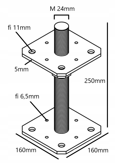 Основание полюса регулируется h1> 160x250x5mm oc h1> - Регулируемое основание полюса с резьбовым стержнем M24, благодаря регулированию мы можем установить высоту луча.
