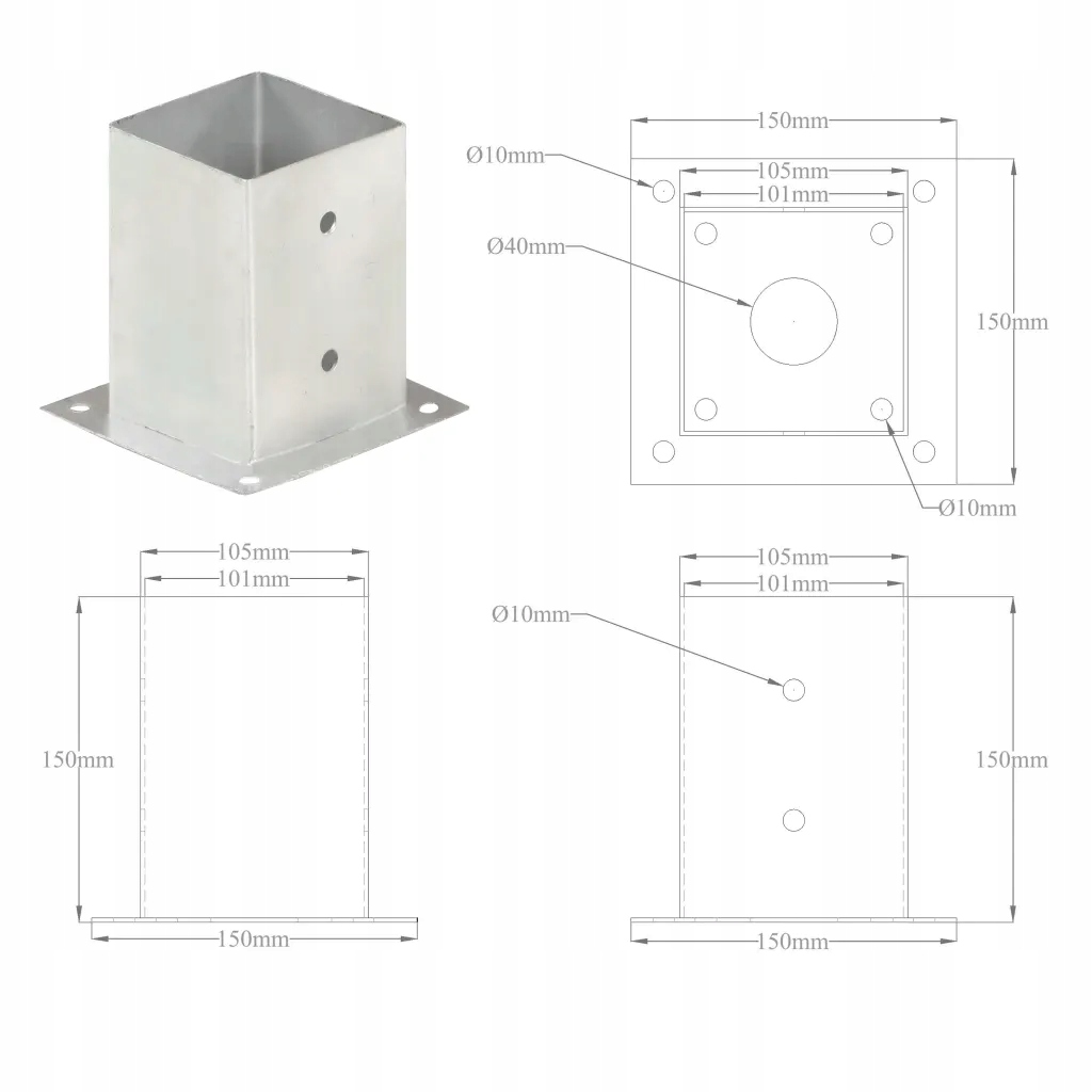 - Размеры основания анкера: 101 x 101 мм (Ш x Г)