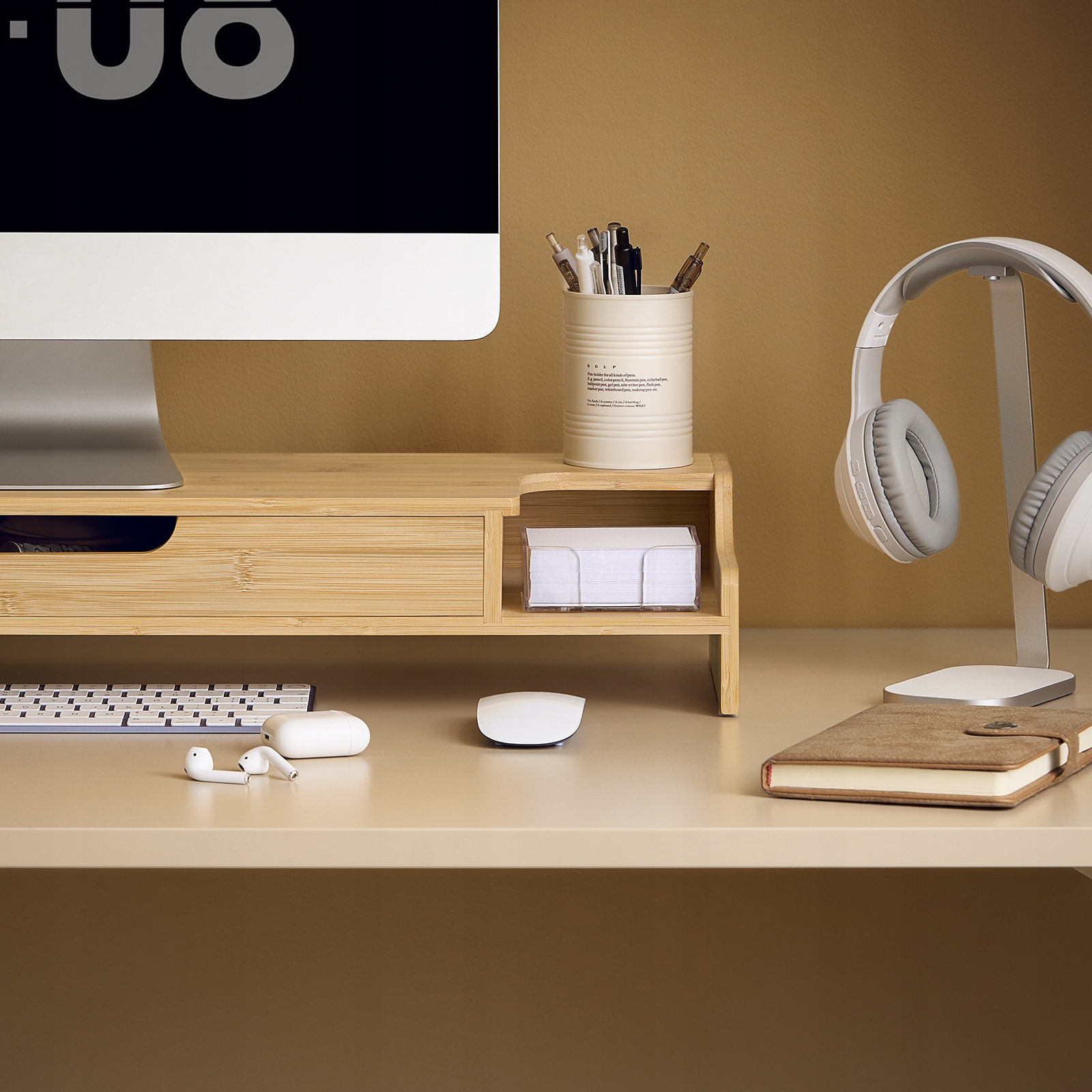 Эта стойка монитора имеет большой ящик, небольшой ящик и разблокированное место для хранения справа на различных объектах.
