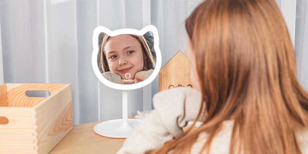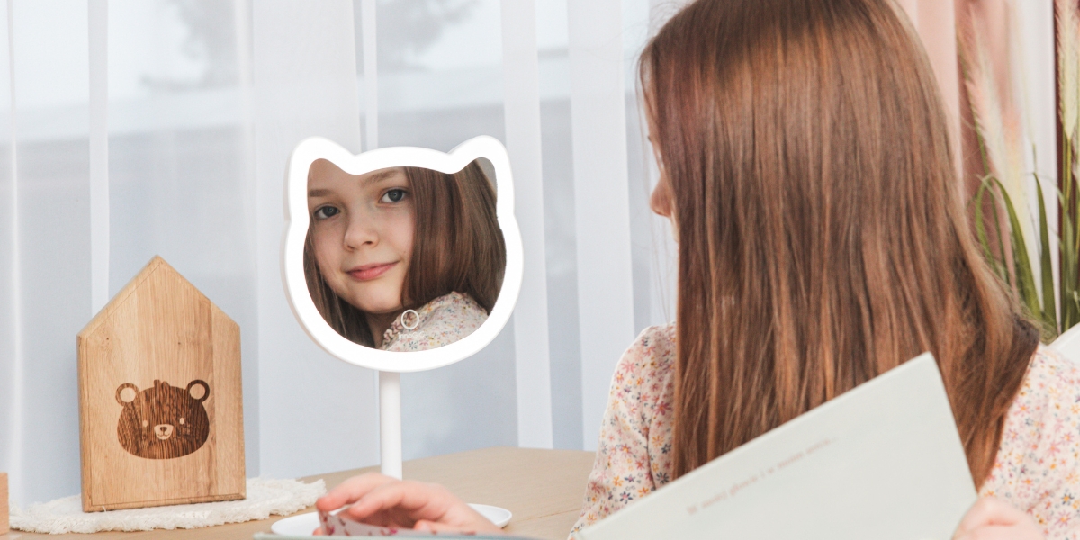 В передней части зеркала расположен интуитивно понятный сенсорный датчик, благодаря которому ваш ребенок может легко включать и выключать освещение. Более того, Яркость светодиода можно плавно регулировать, адаптируя свет к текущим потребностям – от нежного свечения до полной освещенности.