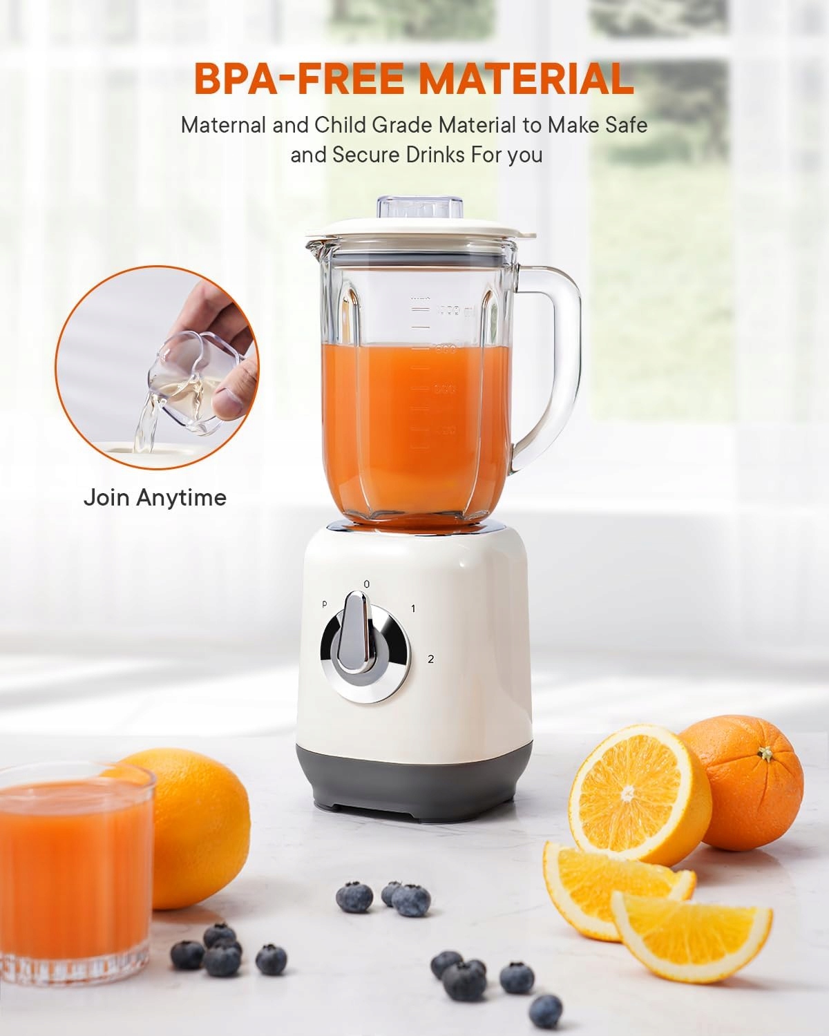 , оснащенный эффективным двигателем 700 Вт со скоростью до 22 000 об/мин, что может быстро и эффективно раздавить лед и замороженный фрукты, делать соки, коктейли для молока, детское питание, овощи, орехи и многое другое.