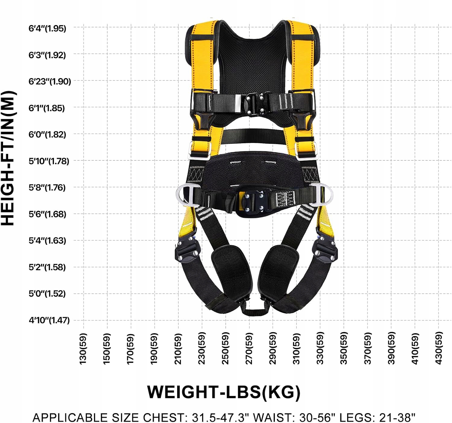 Спинное D-образное кольцо изготовлено из прочной стали, выдерживающей нагрузку от 60 до 180 кг. Строительная привязь имеет прочные боковые D-образные кольца, которые можно использовать для стабилизации вашего рабочего положения и хранения дополнительных крючков!